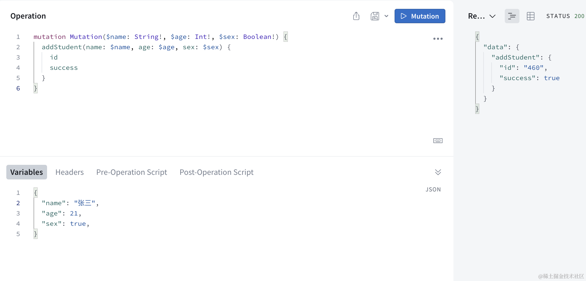 比较容易看懂,用 @Query 和 @Mutation 分别实现 Query 和 Mutation 对应的方法。