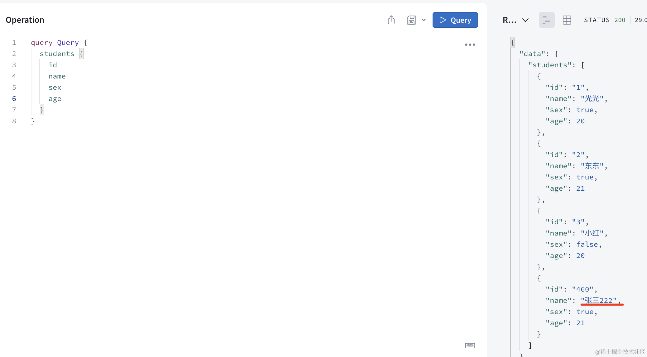 之后就可以在 palyground 里发送 graphql 请求,做 CRUD 了。