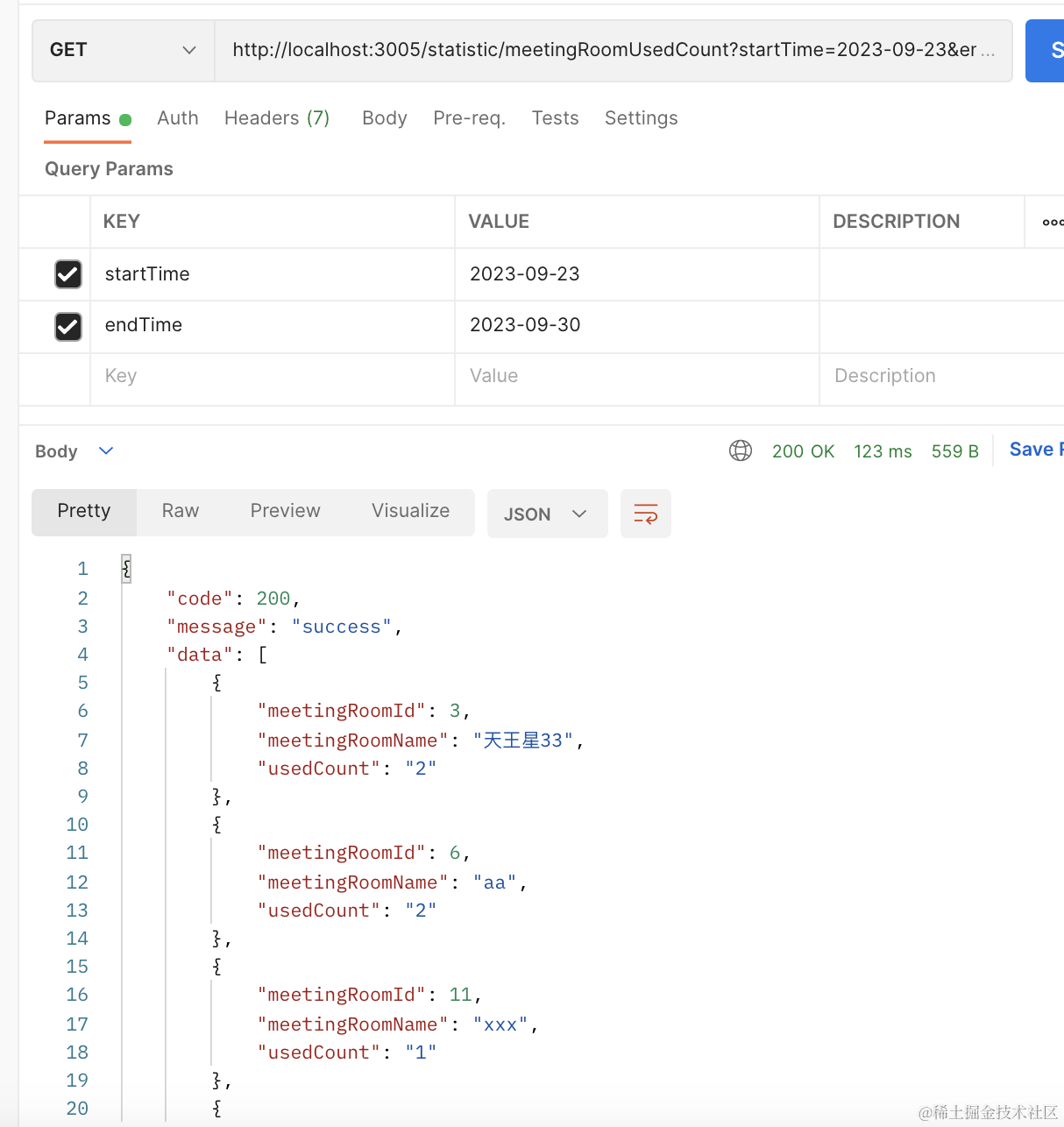 http://localhost:3005/statistic/meetingRoomUsedCount?startTime=2023-09-23&endTime=2023-09-30
