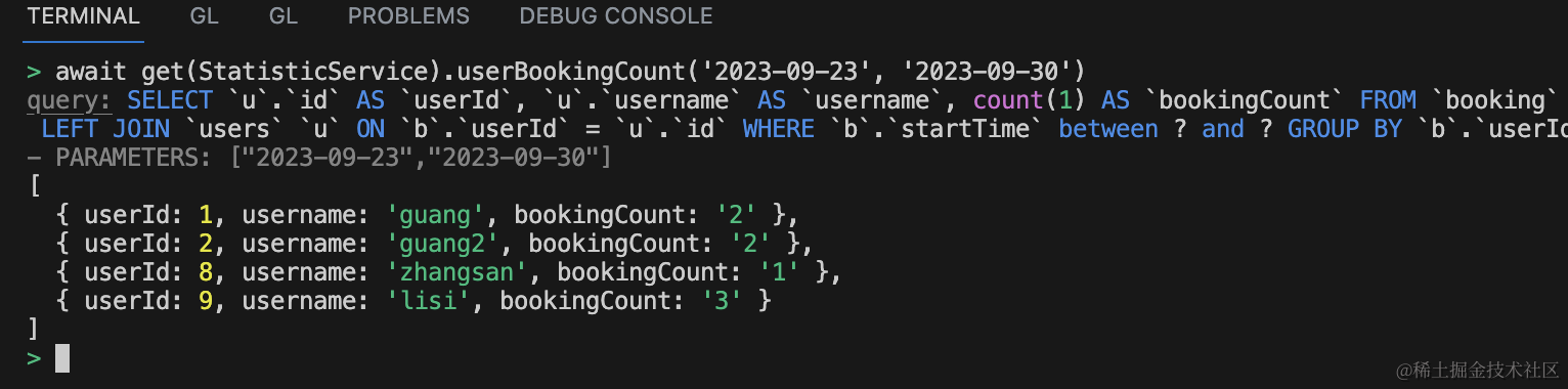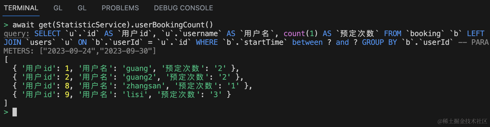 接下来在 nest 里把这个统计 sql 实现就好了。