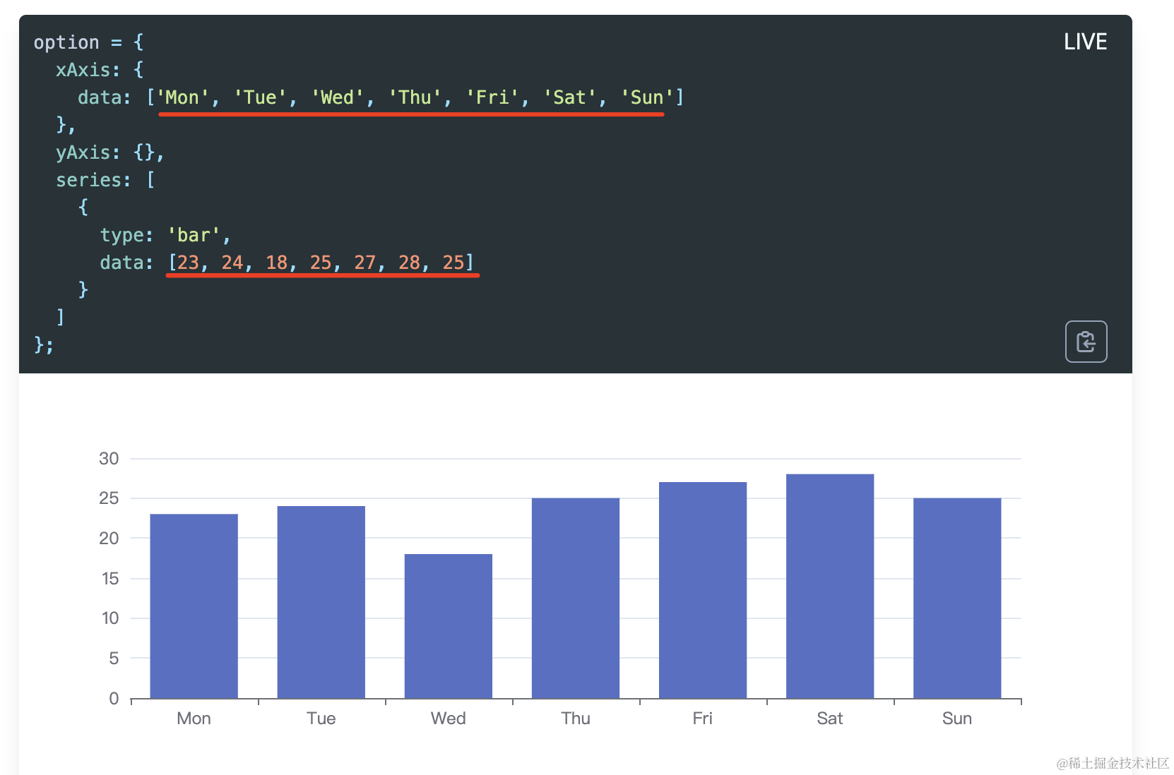 在 echarts 官网 (opens new window)可以看到柱形图和饼图都只需要一个二维的数据,也就是 [[a, b], [a, b], [a, b]] 这样的形式的数据: