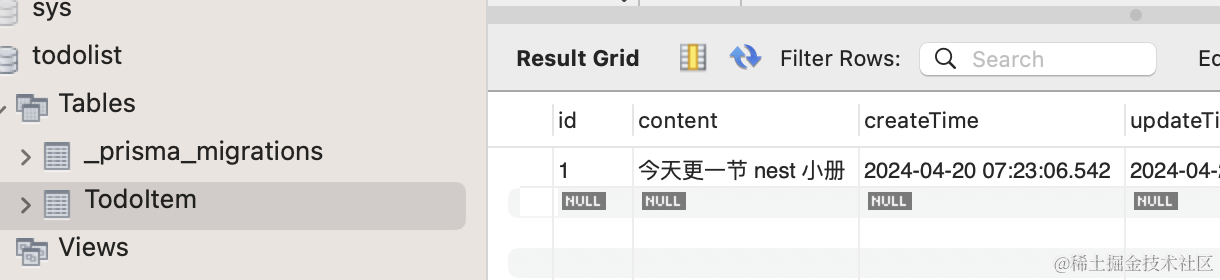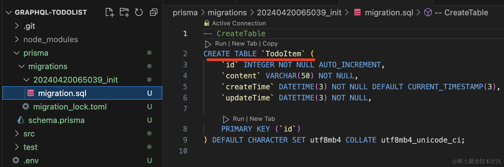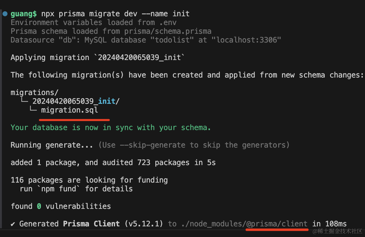 执行 prisma migrate dev,它会根据定义的 model 去创建表: