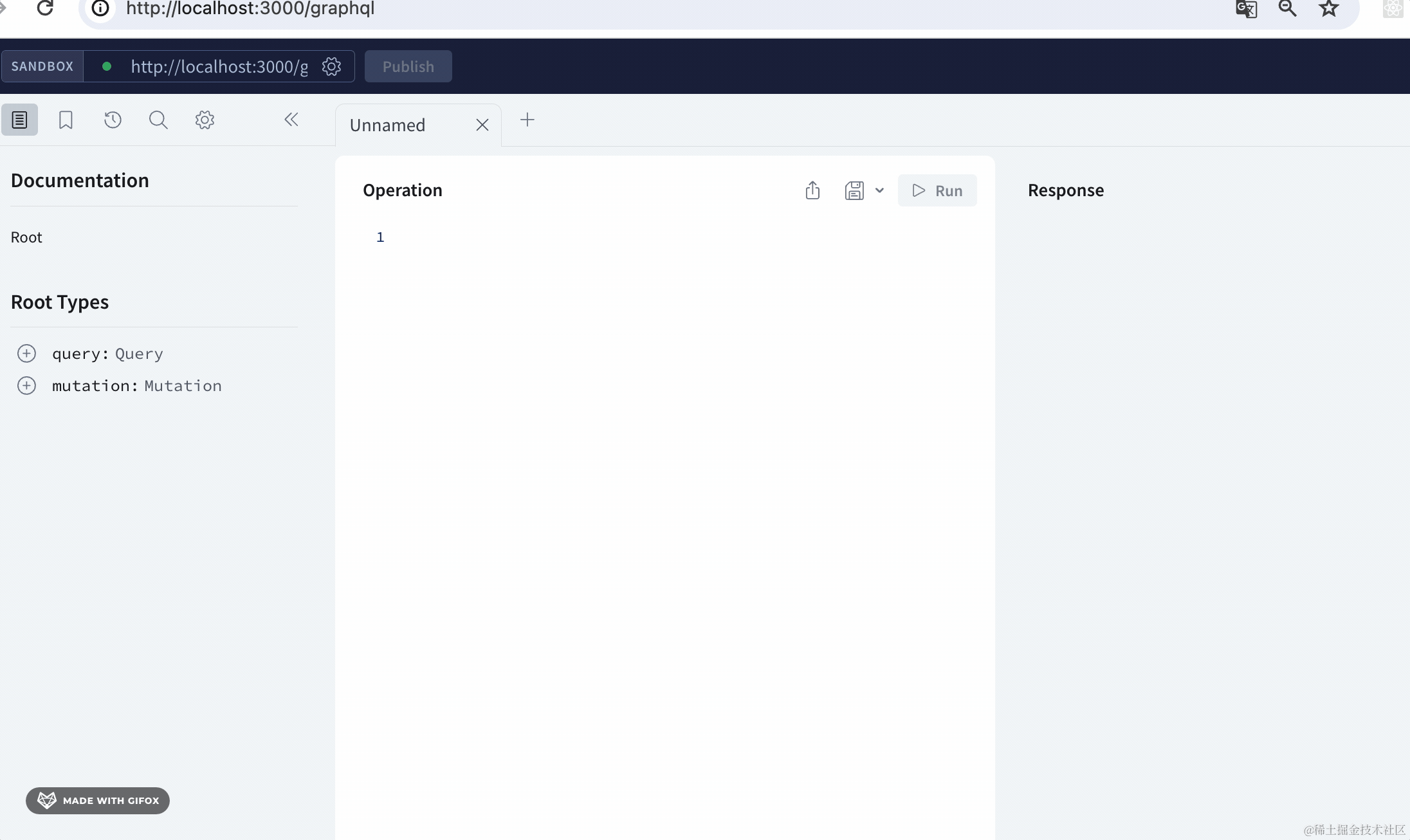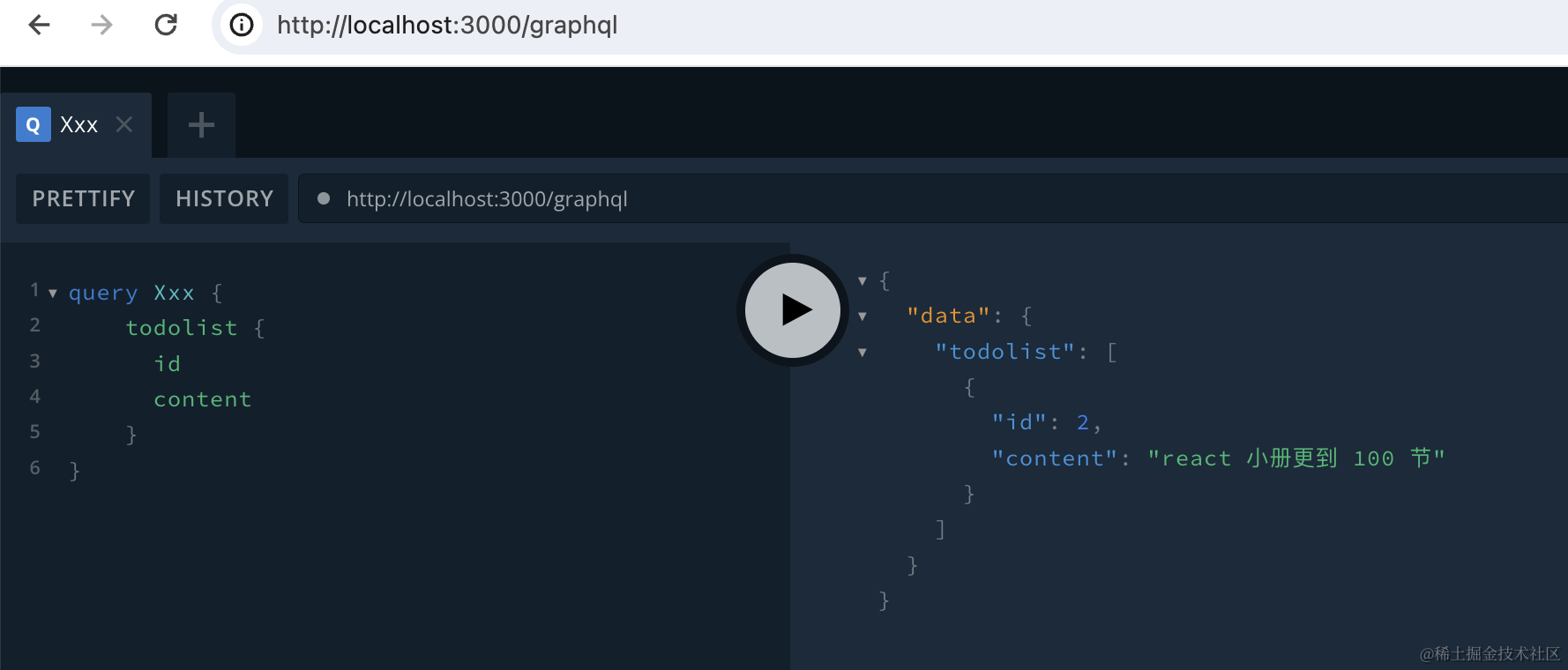 浏览器访问 http://localhost:3000/graphql 就是 playground,可以在这里查询: