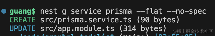 改下生成的 PrismaService,继承 PrismaClient,这样它就有 crud 的 api 了: