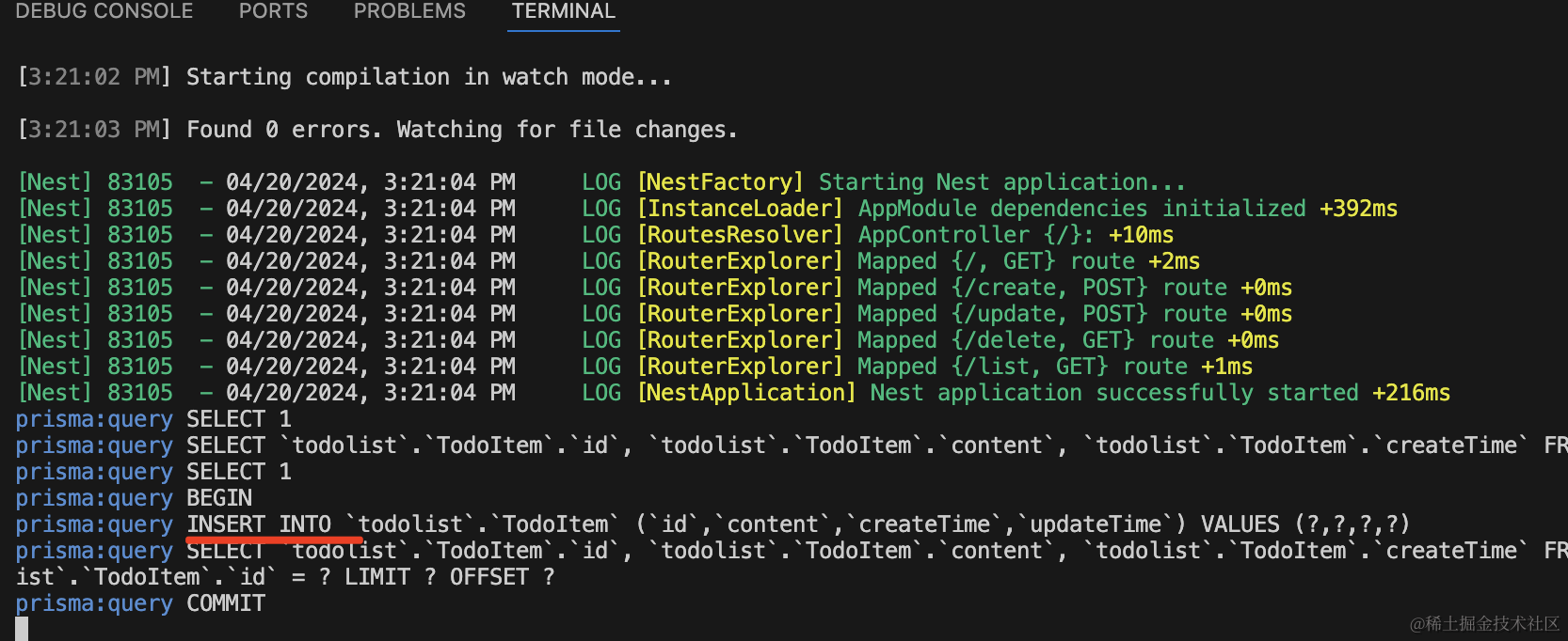 在 constructor 里设置 PrismaClient 的 log 参数,也就是打印 sql 到控制台。