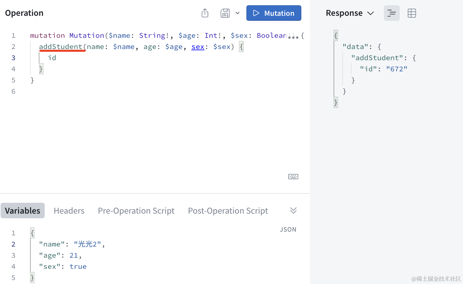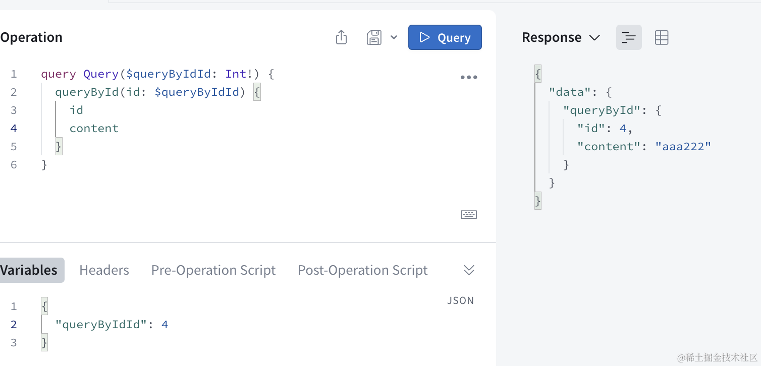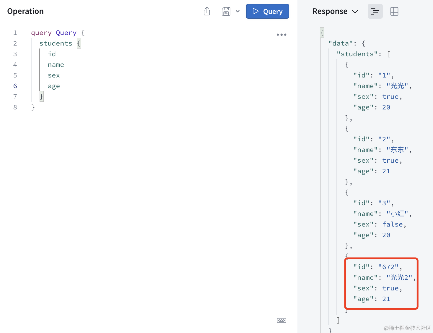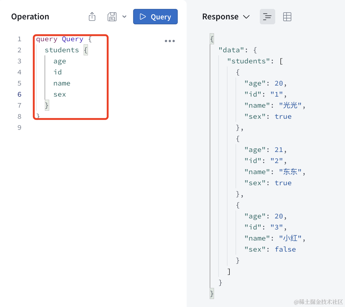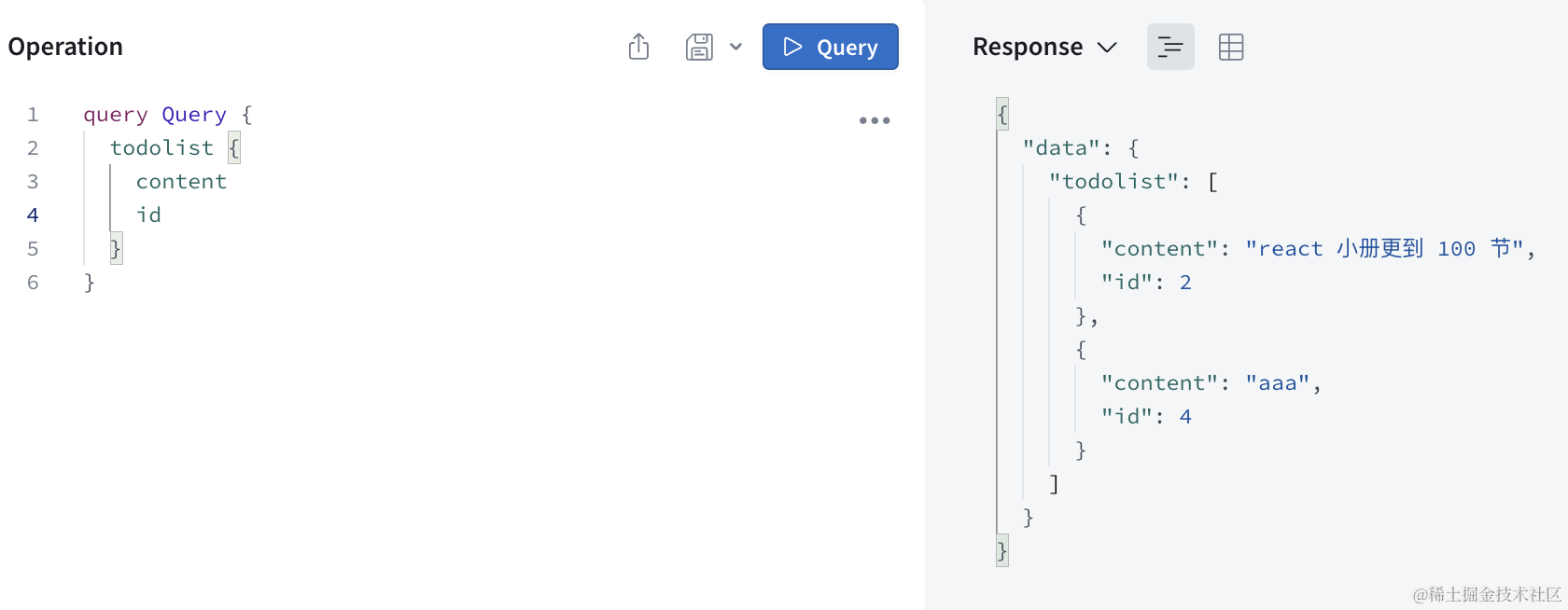 可以在 playground 里调用接口,也可以在 react 里用 @appolo/client 调用。