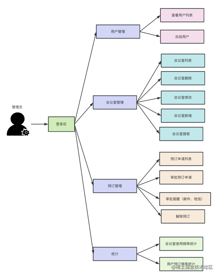模块有 4 个:用户管理模块、会议室管理模块、预订管理模块、统计管理模块。