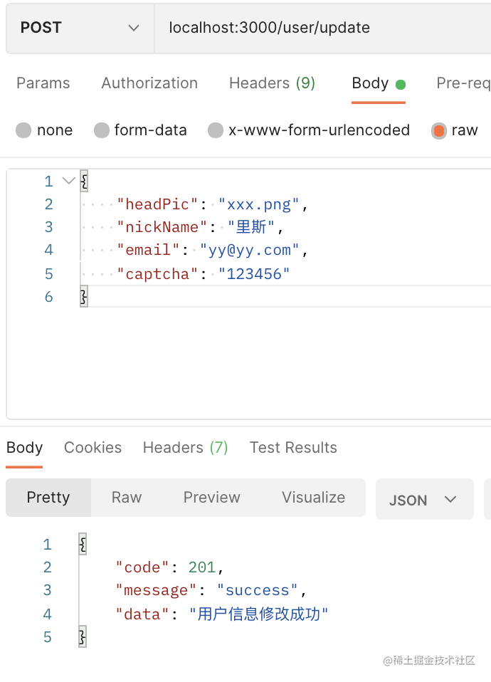 然后提交数据进行更新,用到的 userId 通过之前封装的 @UserInfo 装饰器从 request.user 来取。