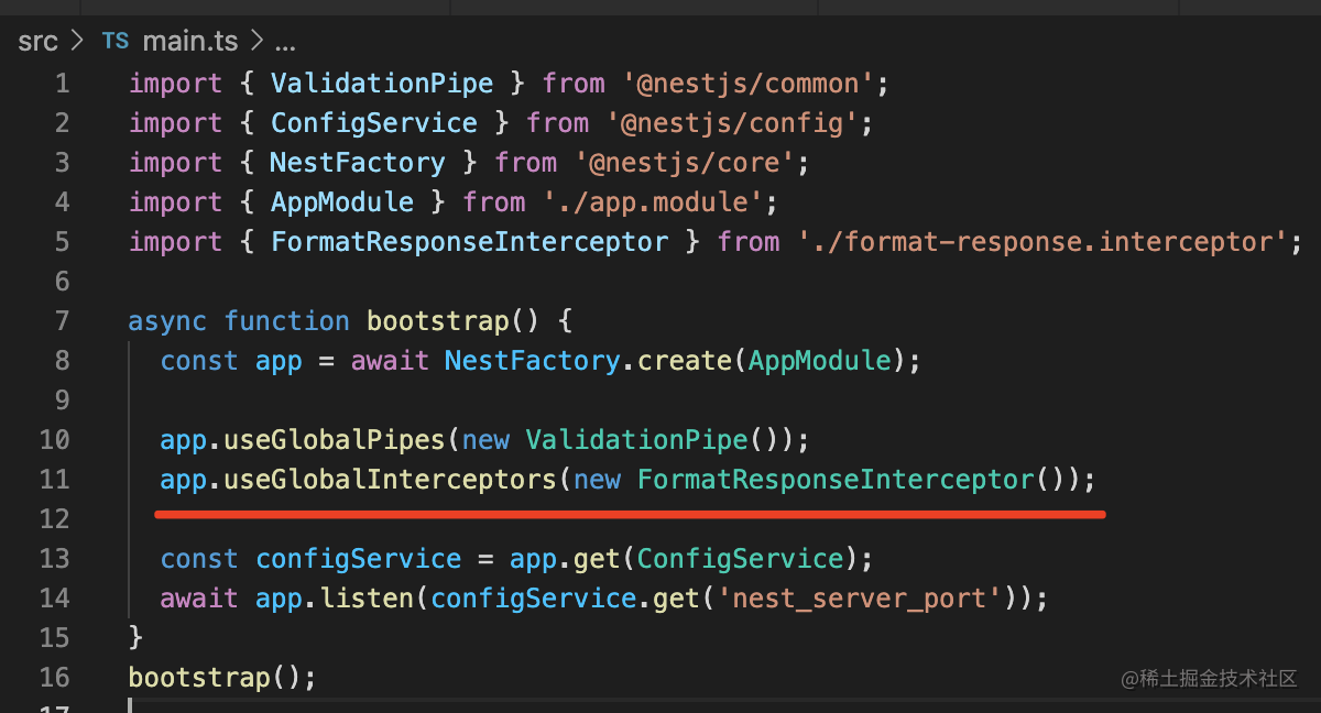 这节我们添加了 interceptor 用来对响应格式做转换,改成 {code、message、data} 的格式,用到了 map 操作符。
