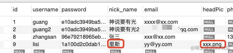 这里 headPic 和 nickName 就不做非空约束了,也就是说可以不改。