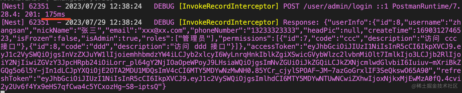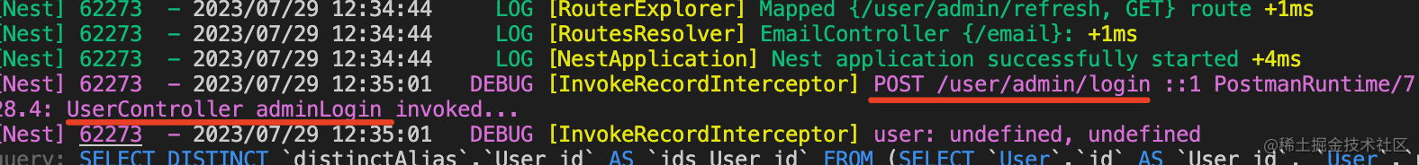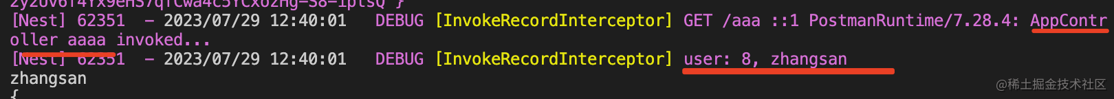 可以看到控制台打印了请求的路径、请求方法、controller、handler 等信息: