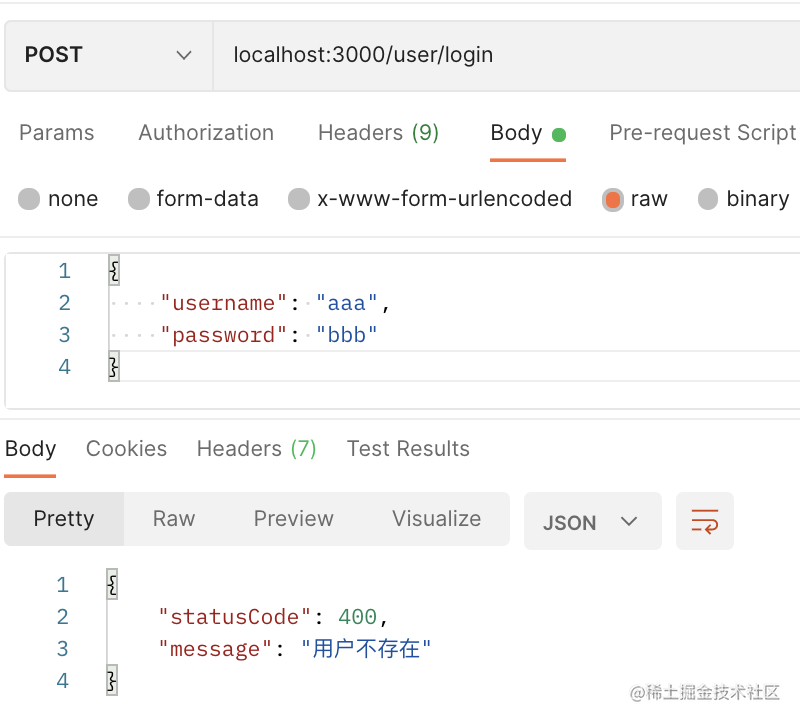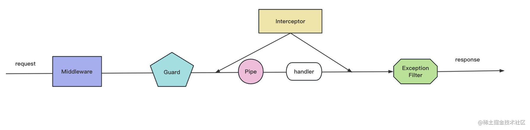 抛出的异常还是由内置的 Exception Filter 来处理,返回响应: