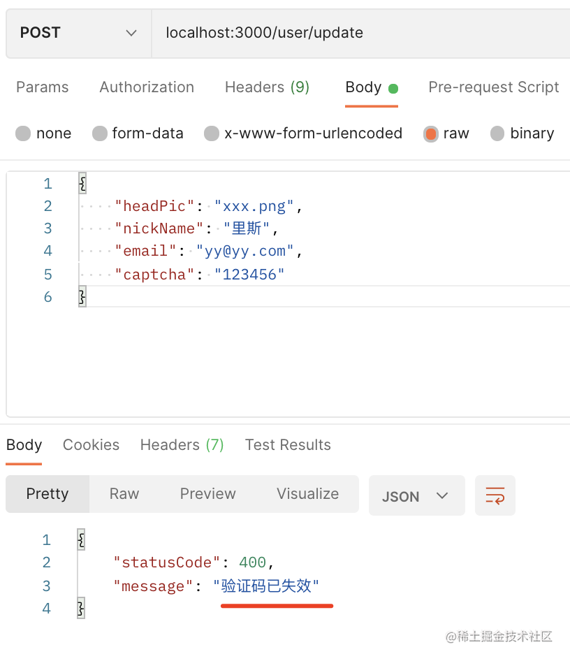 throw new HttpException('验证码已失效', HttpStatus.BAD_REQUEST);