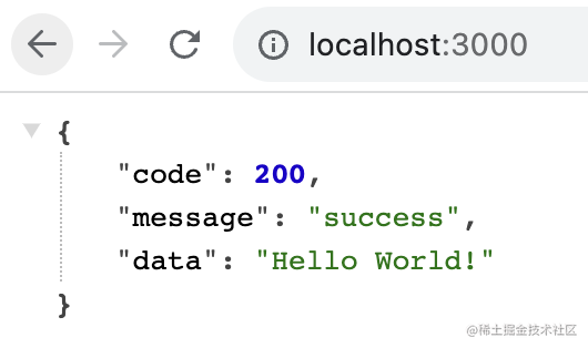 这时候访问 http://localhost:3000 ,可以看到响应格式变了: