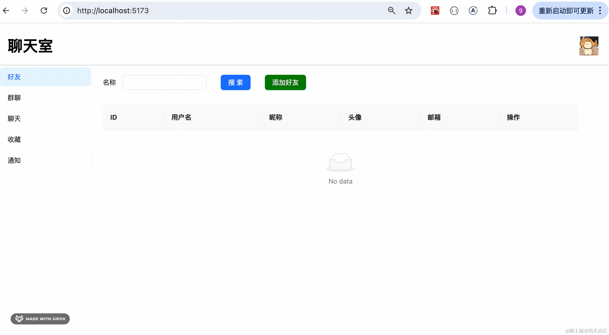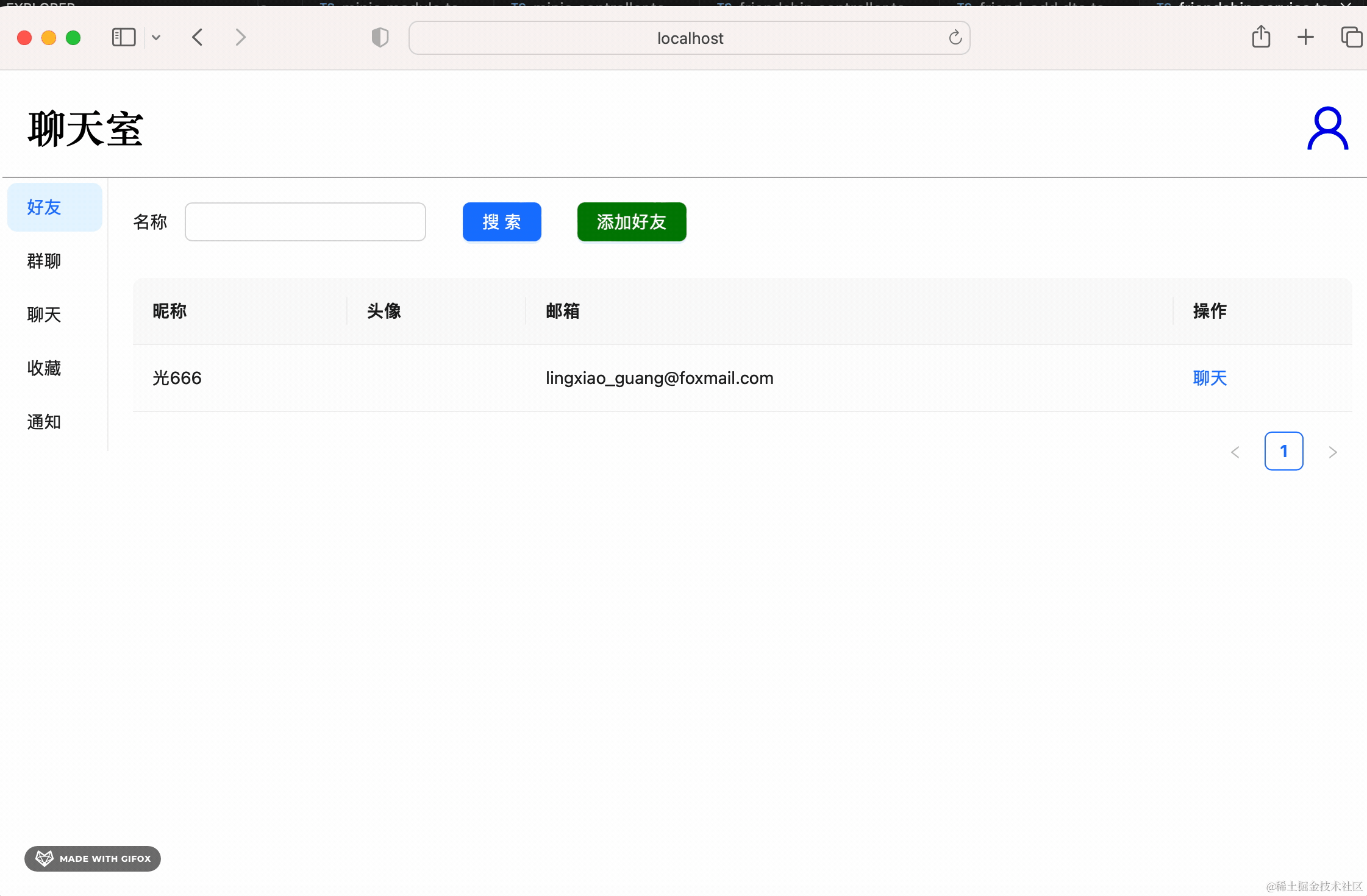 之后进入好友模块的开发,实现了好友列表和添加好友的功能。
