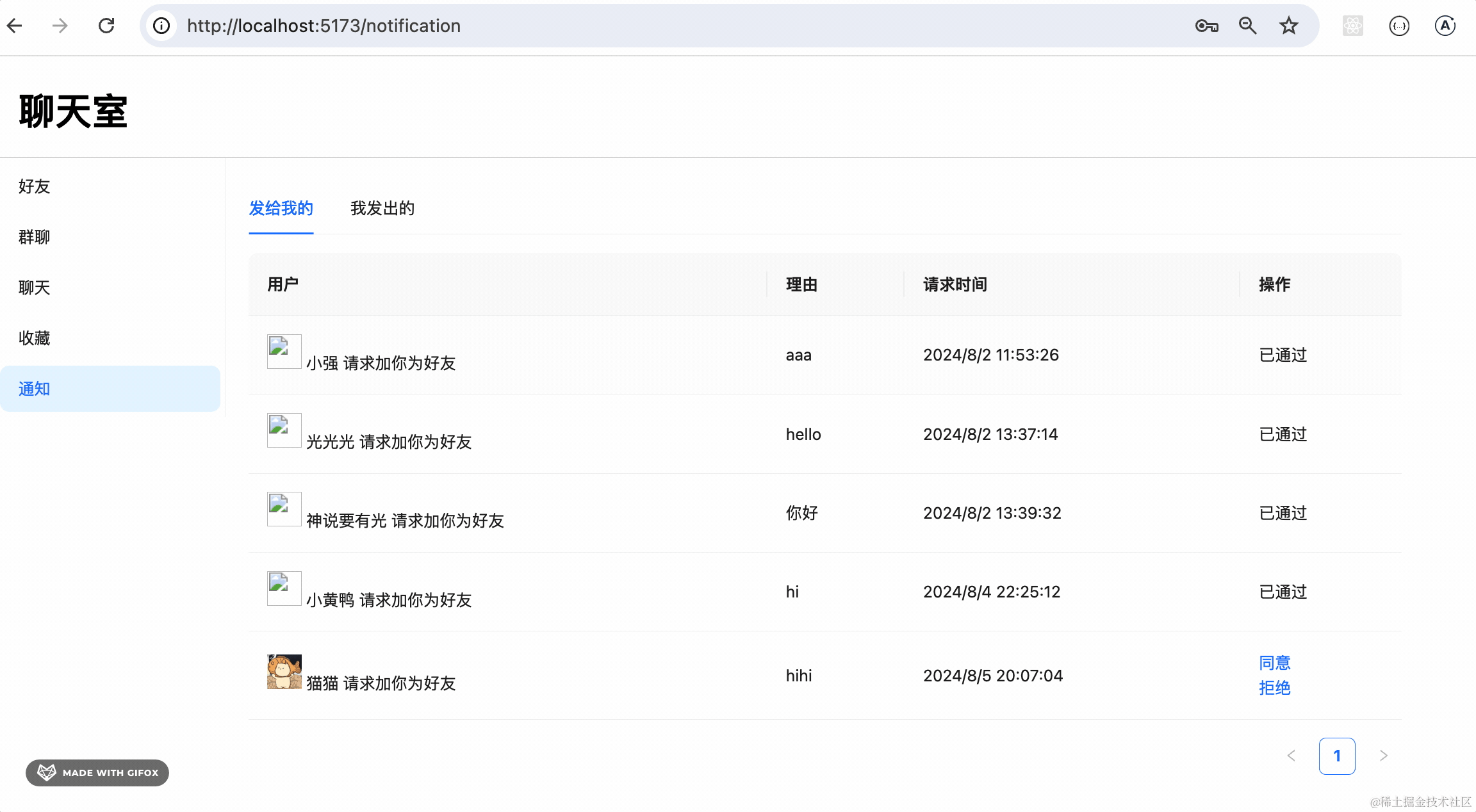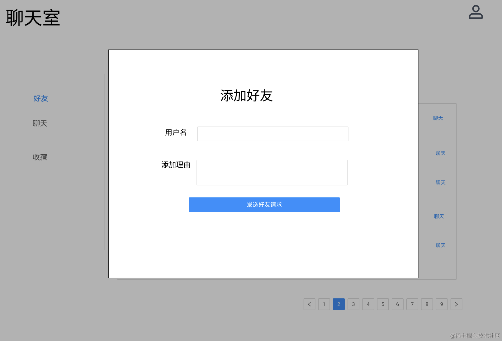 之后又写了好友列表、好友申请、发送好友请求的页面: