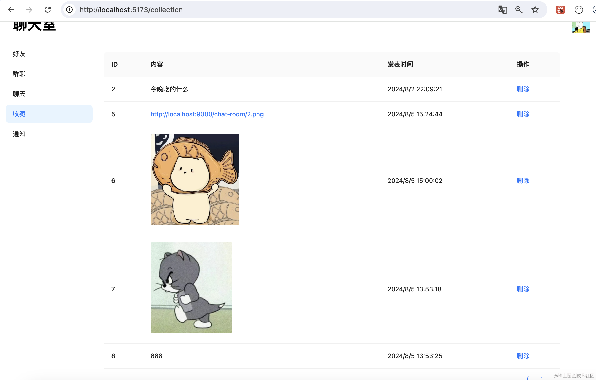 最后实现了收藏功能,双击聊天记录的时候调用 /favorite/add 添加收藏,参数是聊天记录 id: