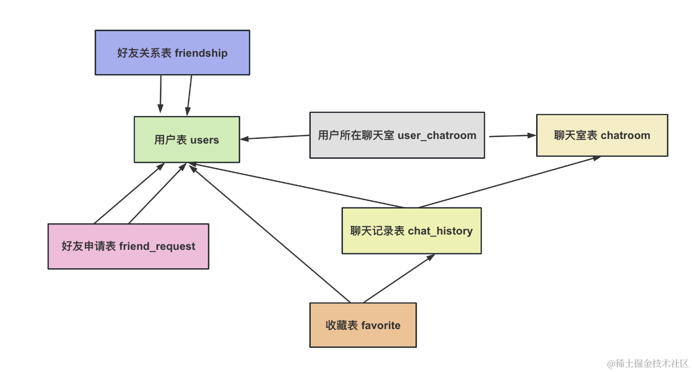 这个聊天室表和用户表是多对多关联: