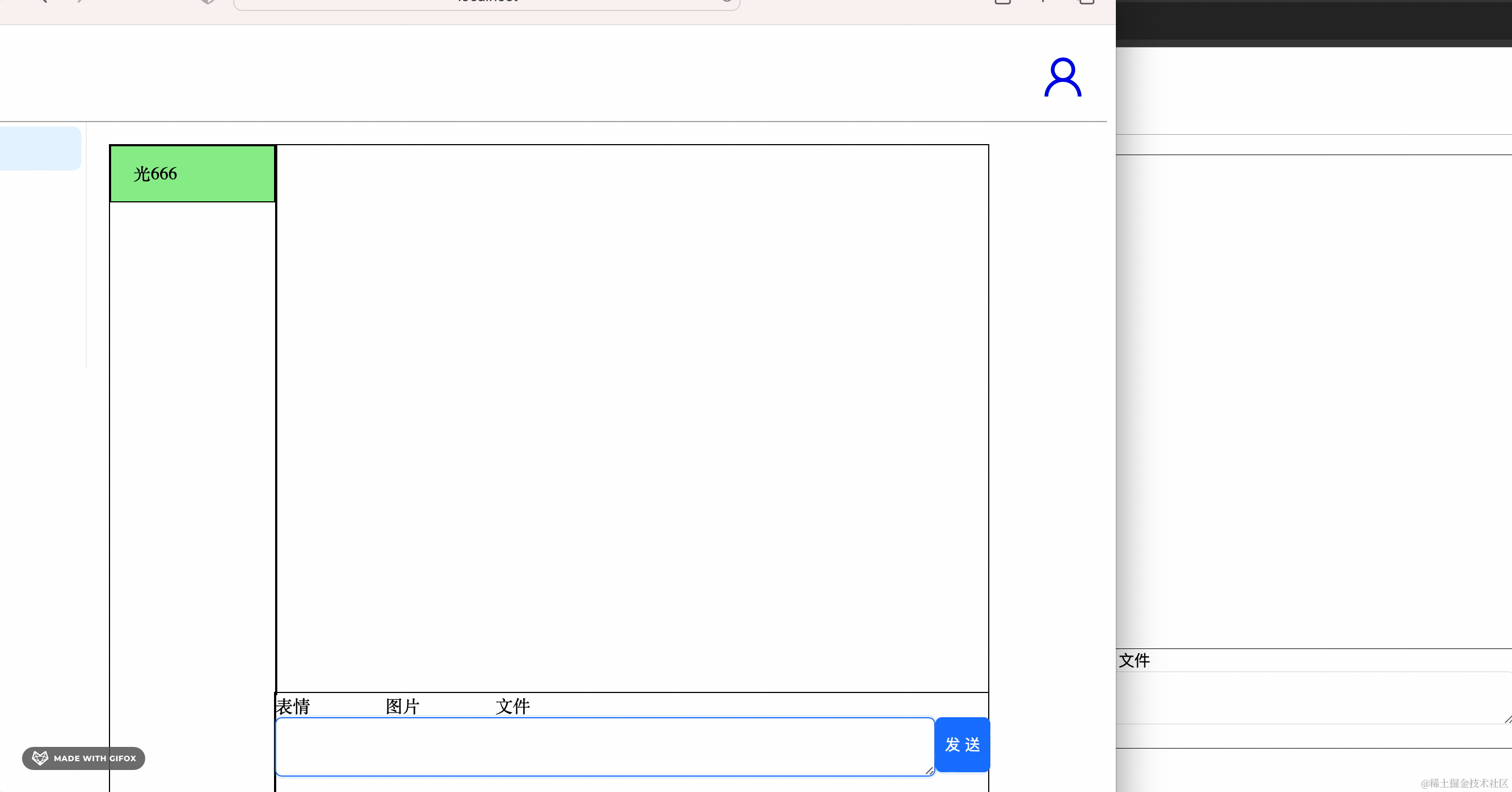 然后实现了发送表情、图片、文件的功能: