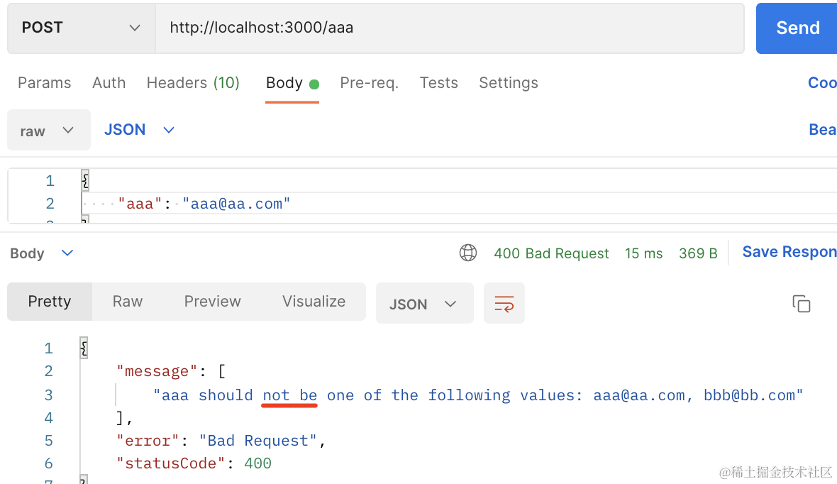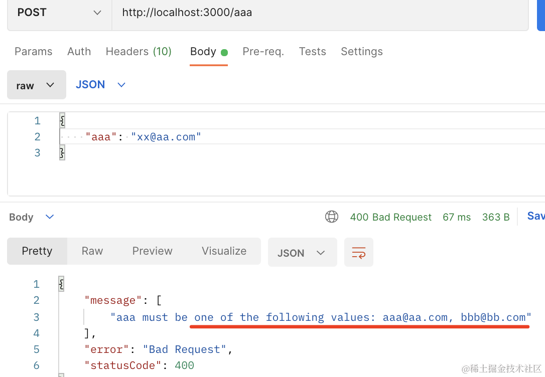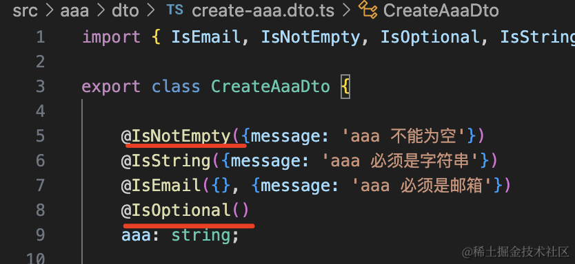 @IsEmail({}, {message: 'aaa 必须是邮箱'})