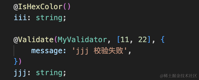 还可以校验颜色值的格式:@IsHexColor、@IsHSL、@IsRgbColor