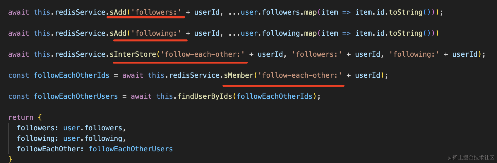 await this.redisService.sInterStore('follow-each-other:' + userId2, 'followers:' + userId2, 'following:' + userId2);