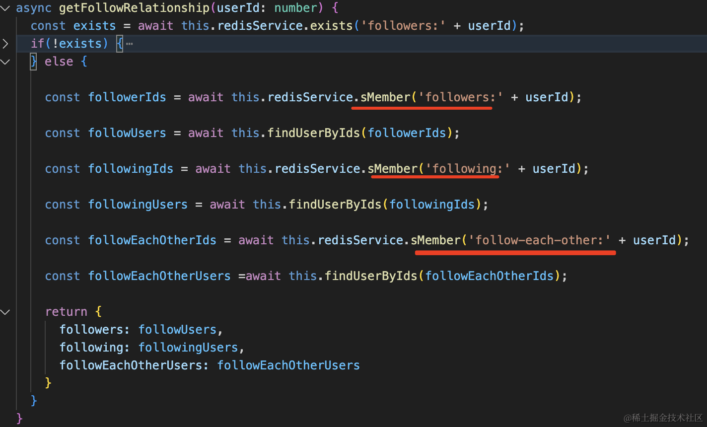 如果 exits 判断 followers 集合存在,就是处理过了,那就直接取 redis 里的这三个集合。