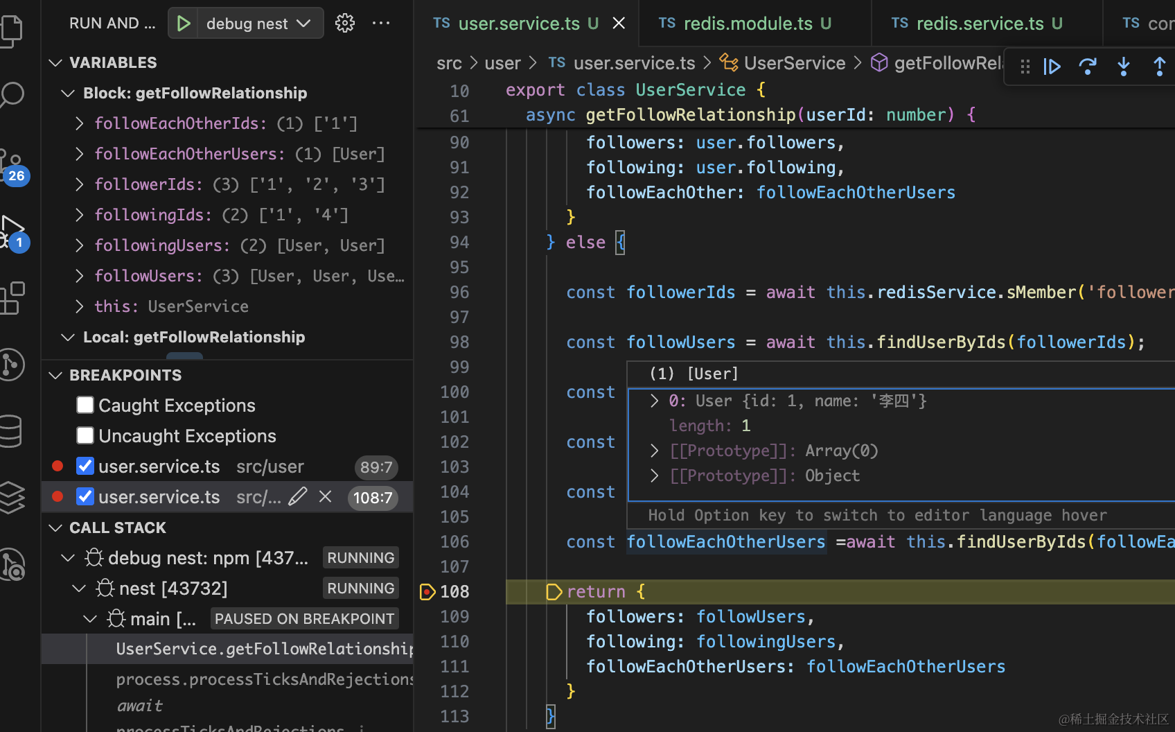 之后查询下 redis,如果有 followers:userId 的 key,就更新下 followers 和 follow-each-other 集合。