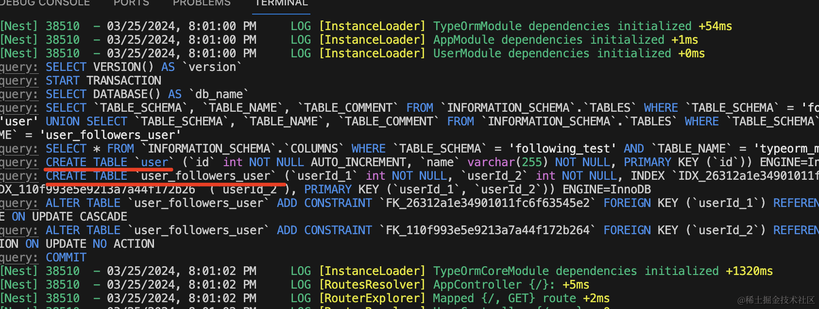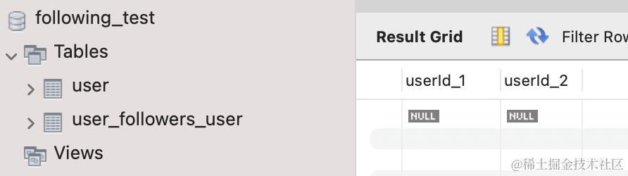 在 mysql 里用中间表来存储 user 和 user 的关系,在 TypeORM 里用 @ManyToMany 映射。