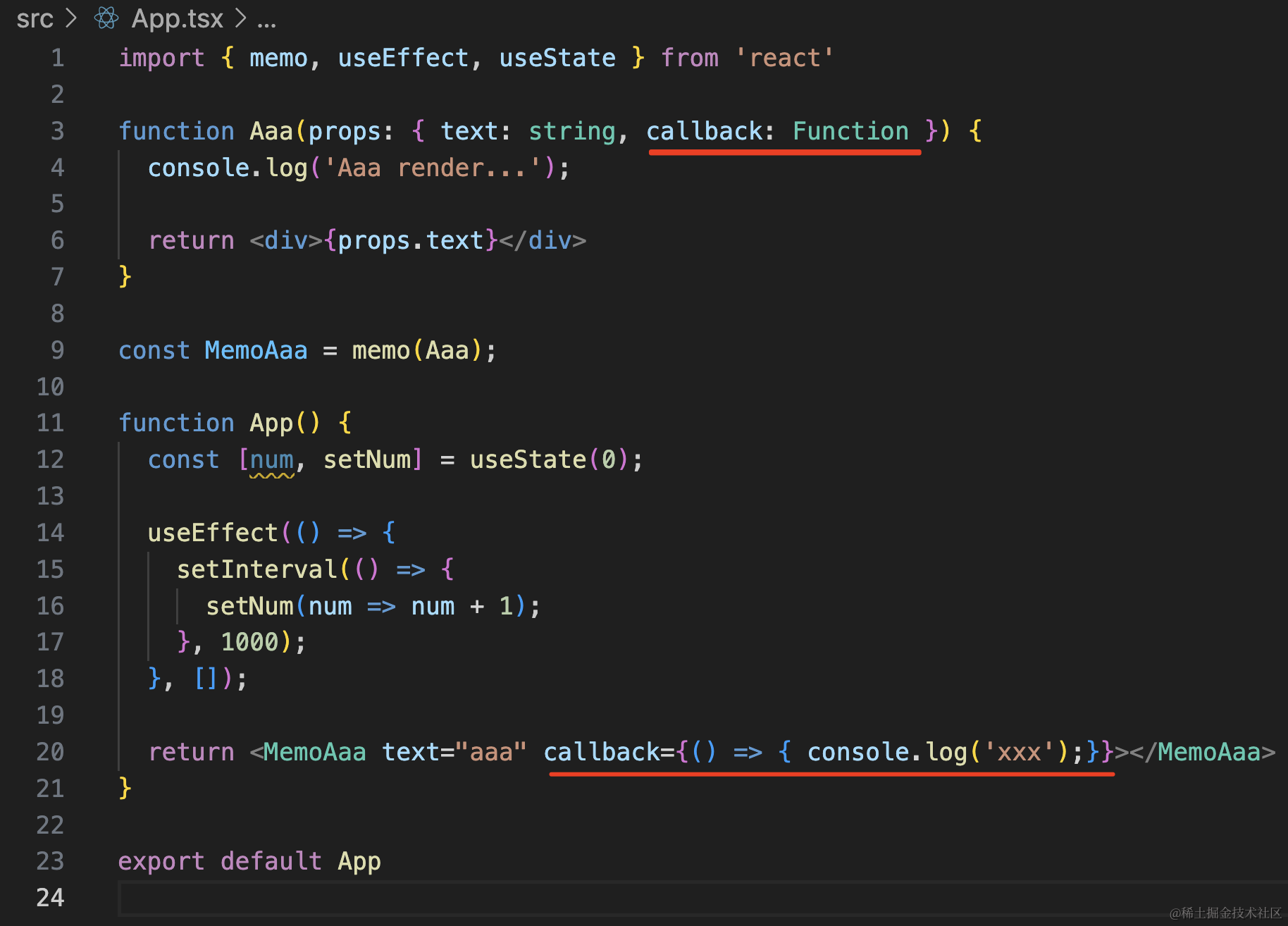 return <MemoAaa text="aaa" callback={() => { console.log('xxx');}}></MemoAaa>