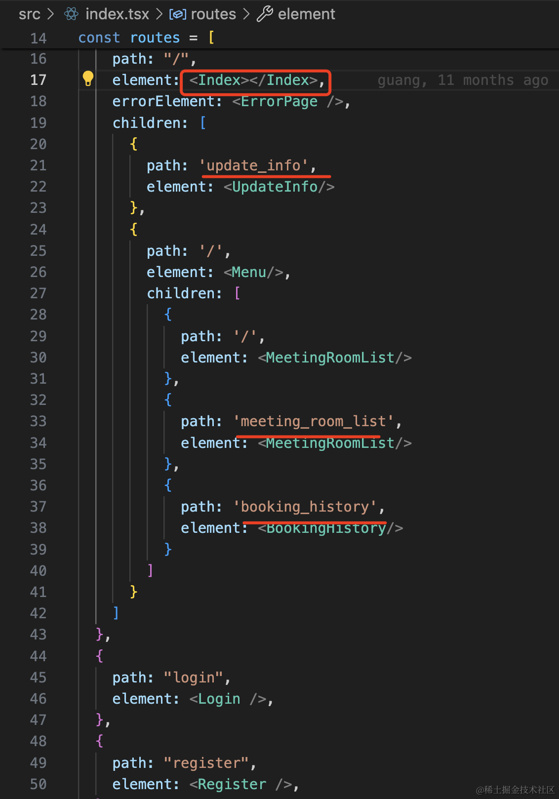 分析下 frontend_user 的现有路由,需要登录的这几个页面都会渲染 Index 组件: