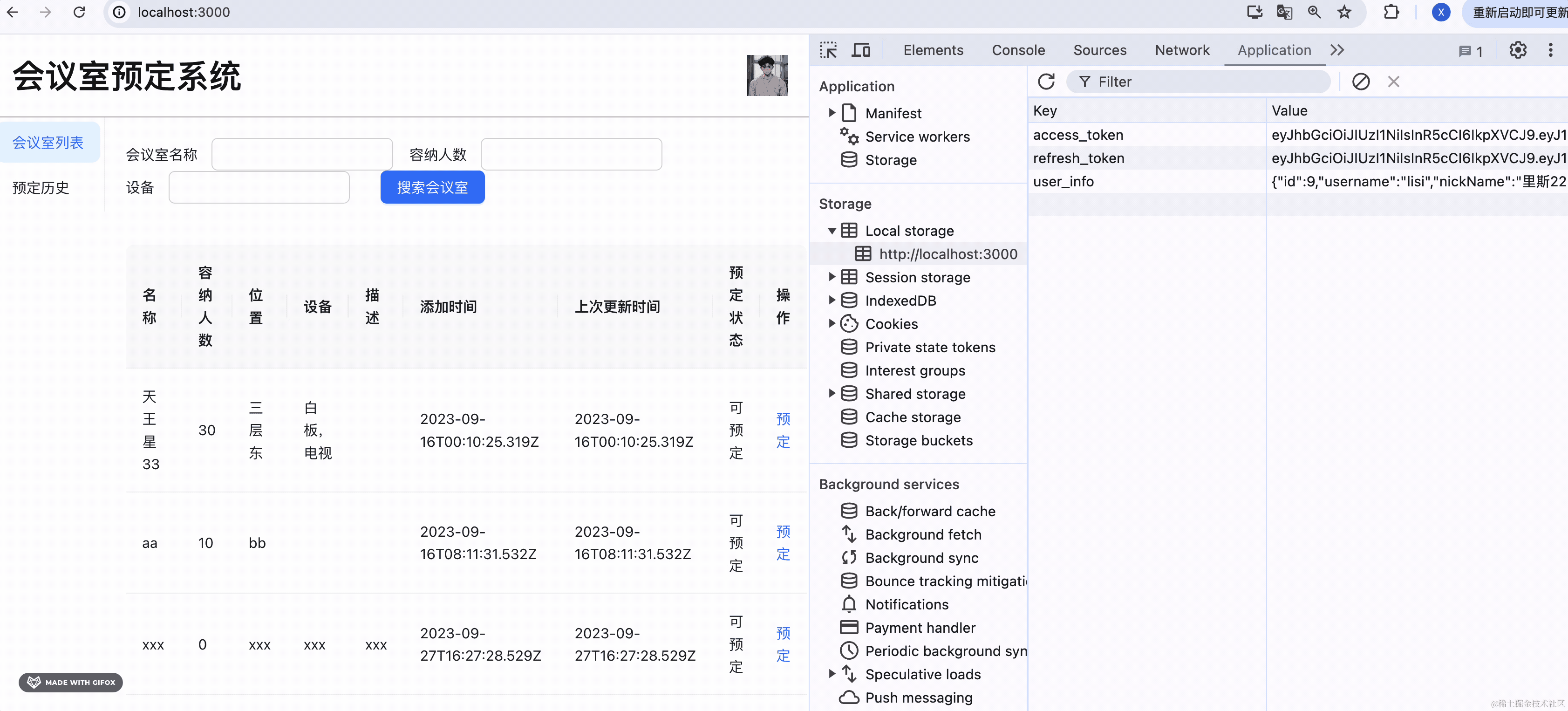登录之后,我们会在 localStorage 保存 access_token、refresh_token、user_info 的信息: