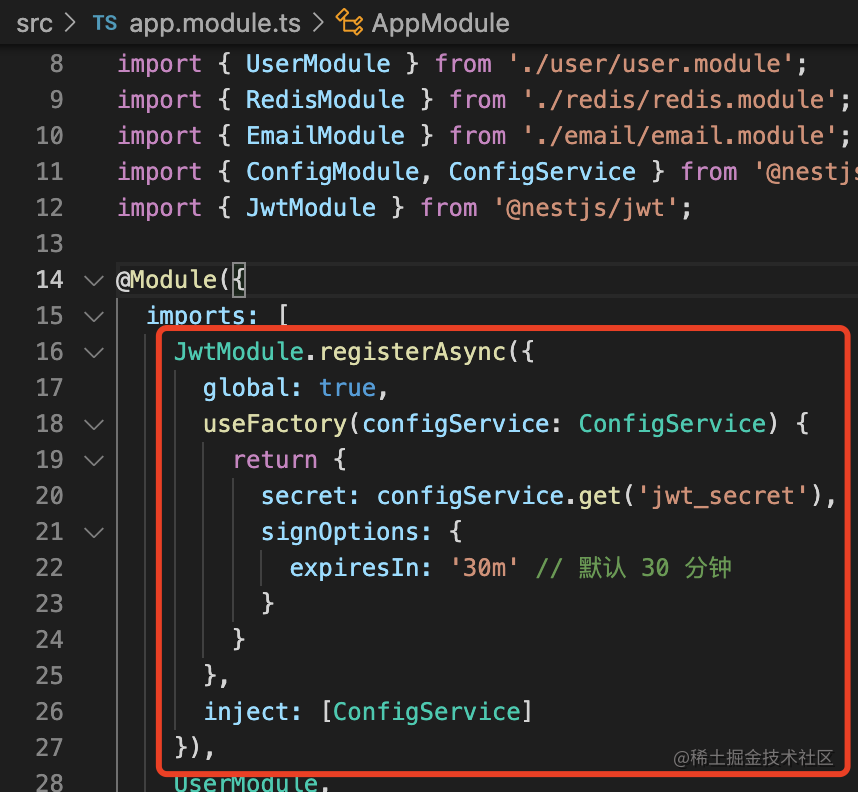 然后全局启用这个 Guard,在 AppModule 里添加这个 provider: