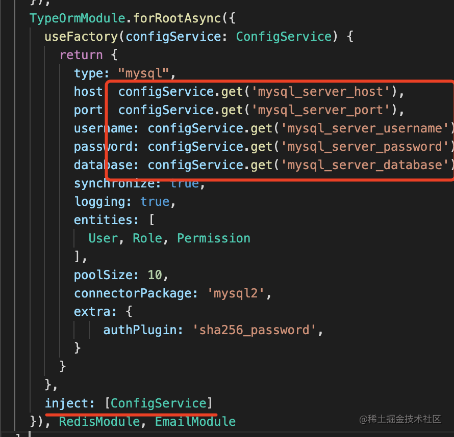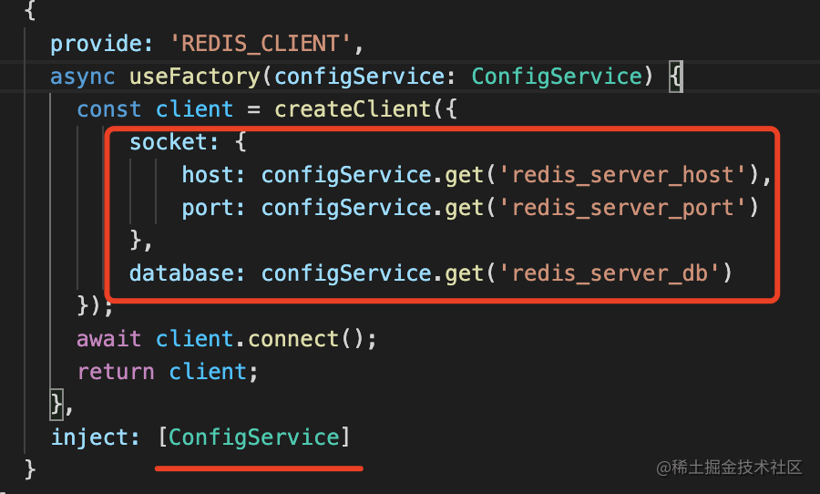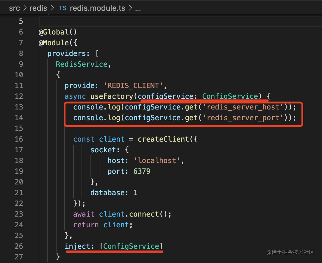 然后在 RedisModule 里注入 ConfigService 来读取配置:
