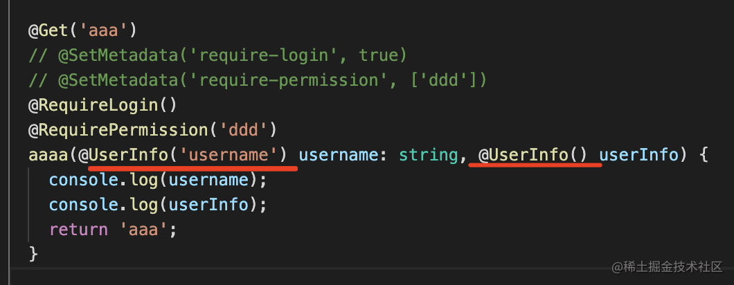 UserInfo 装饰器是用来取 user 信息传入 handler 的。