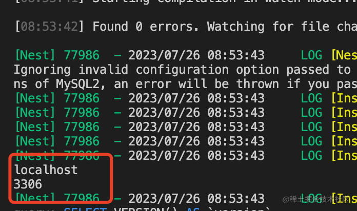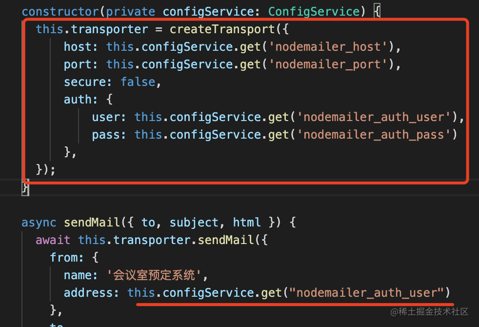 配置抽离使用 @nestjs/config 包,把配置放在 src 下的 .env 文件里,然后代码里从 configService 读取配置。