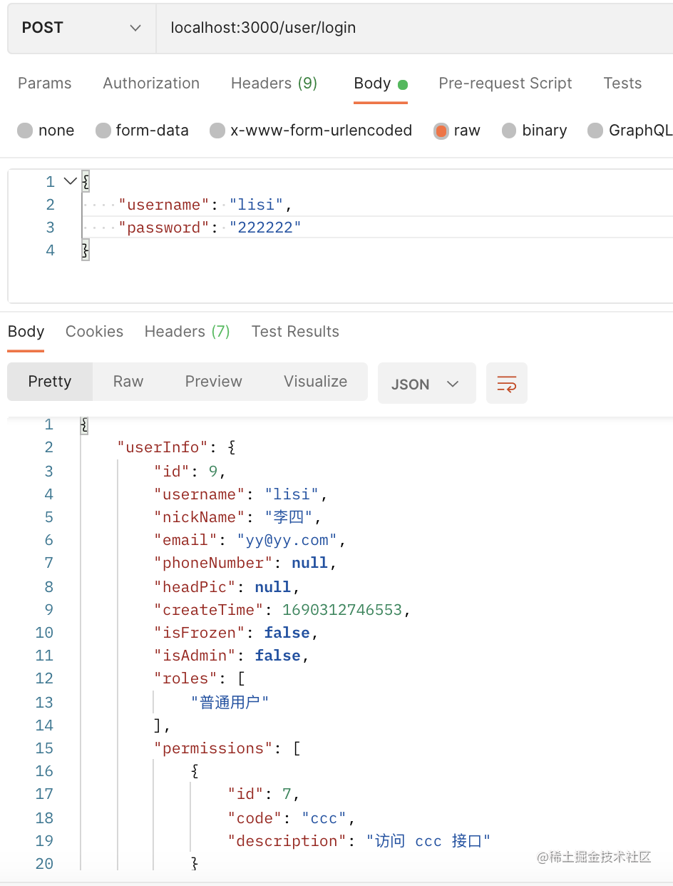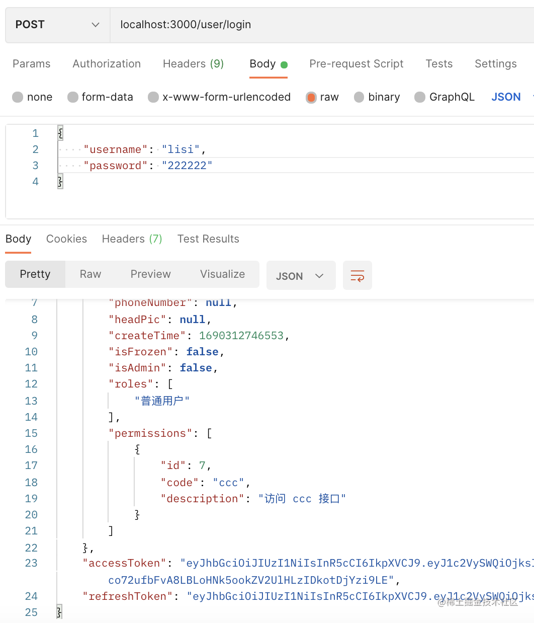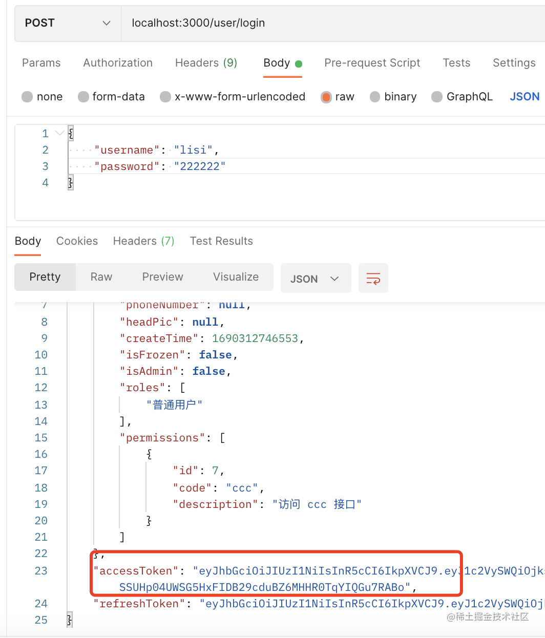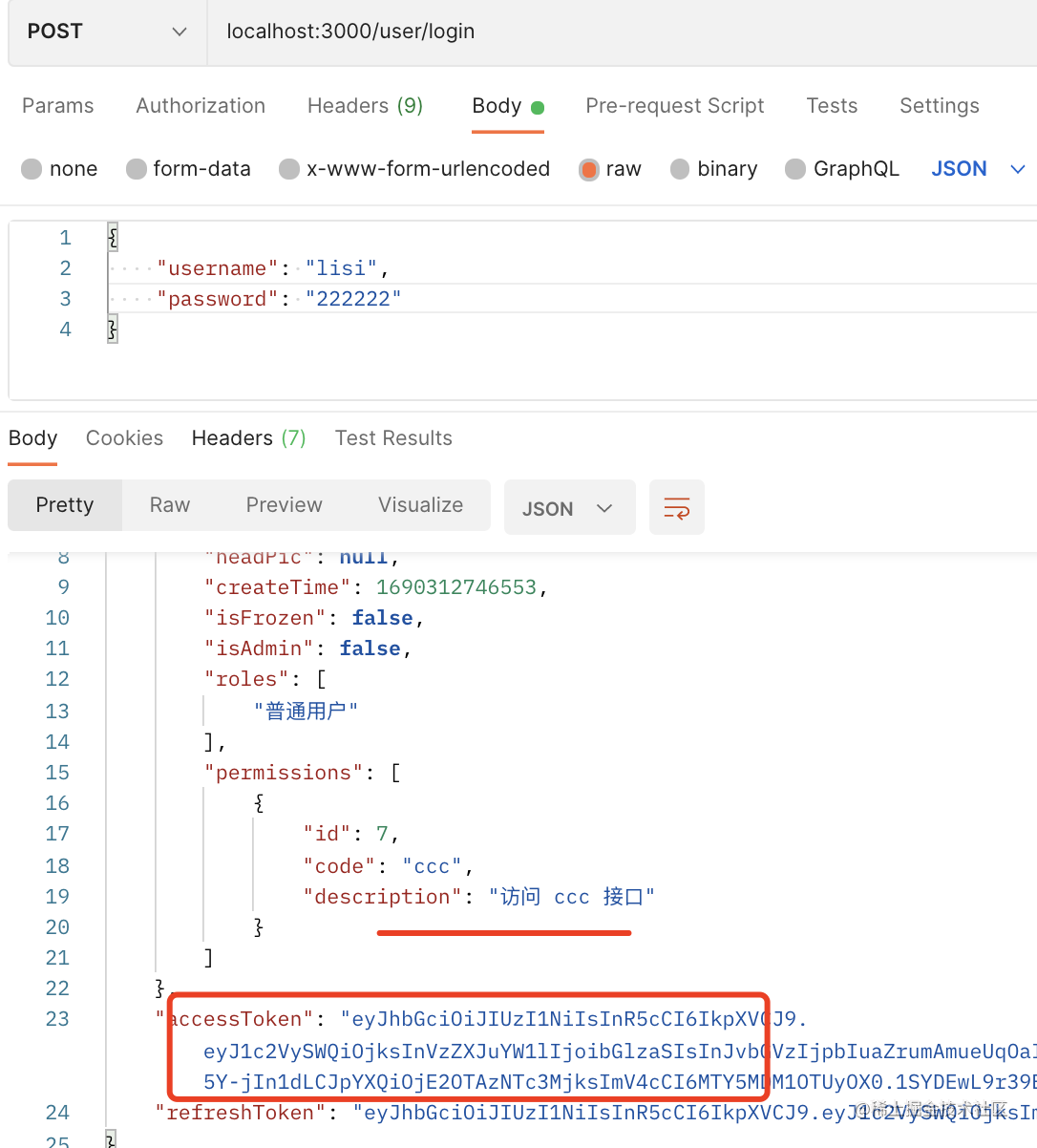 访问 /user/login 登录 lisi 账号,拿到 accessToken