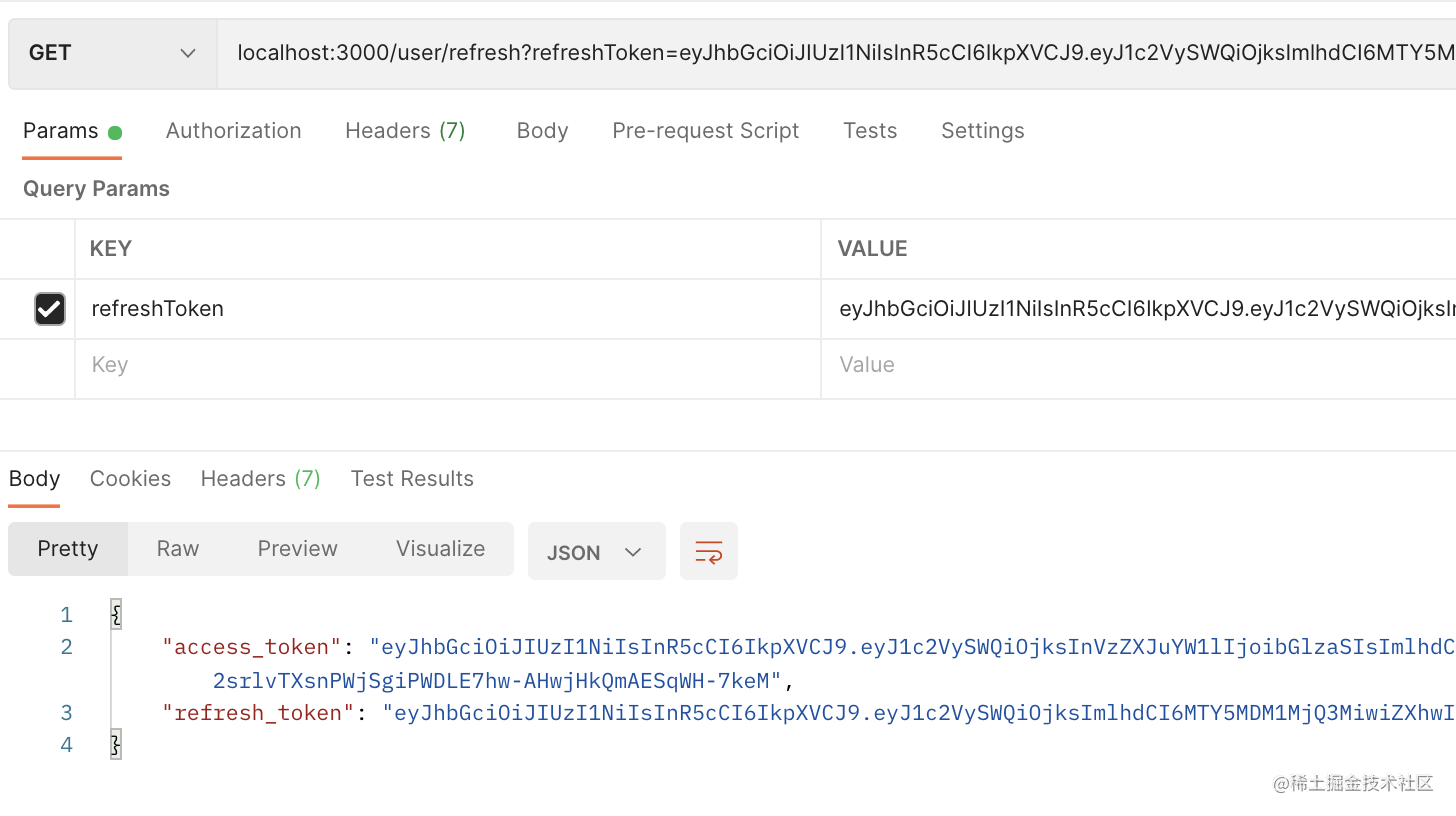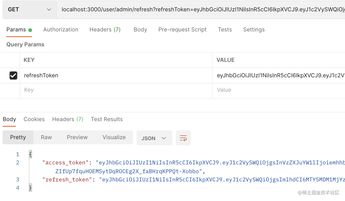 并支持使用 refreshToken 来刷新 token。