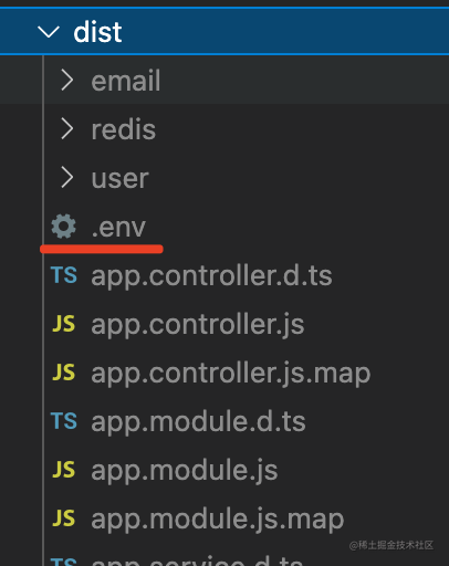 这样可以配置 nest-cli.json 的 assets 和 watchAssets 来自动把 env 文件复制到 dist 目录下。