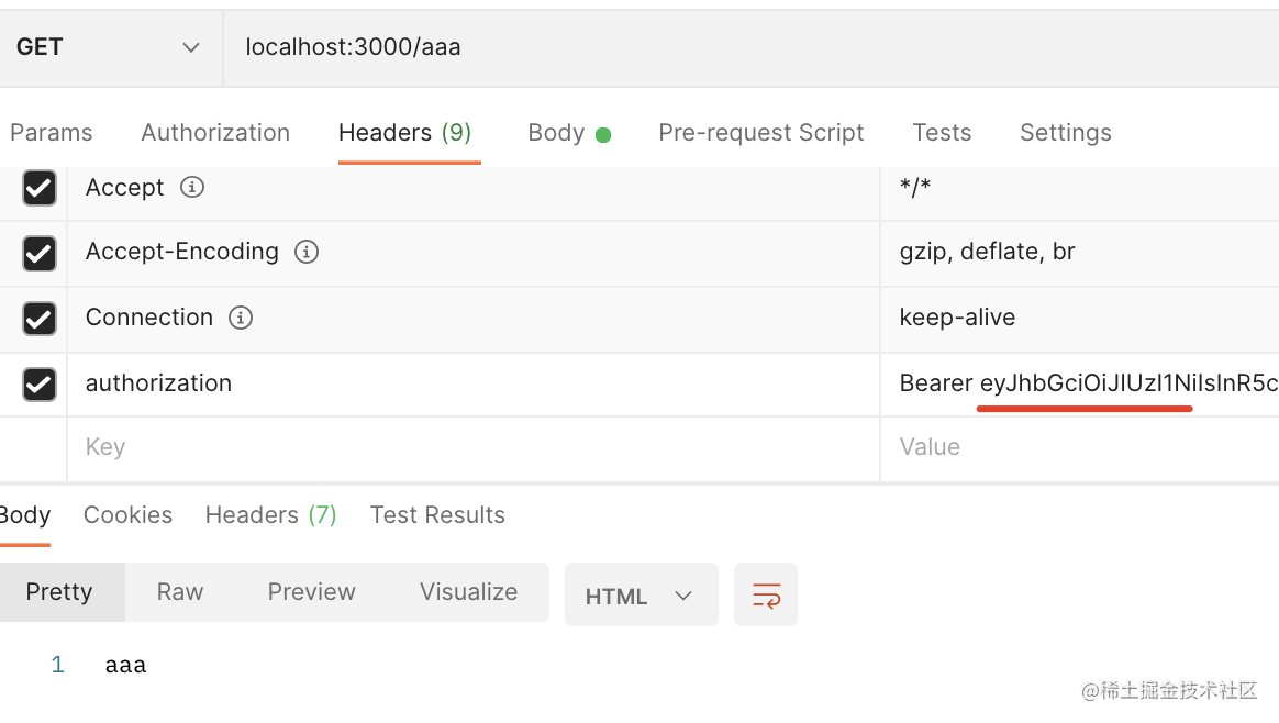 添加到 authorization 的 header 里,就可以访问了: