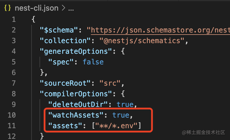 我们在 nest-cli.json 里加一下 assets 的配置: