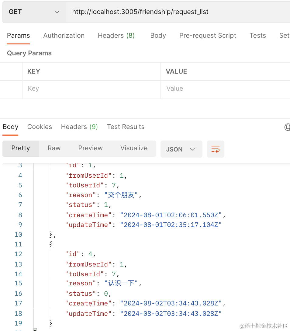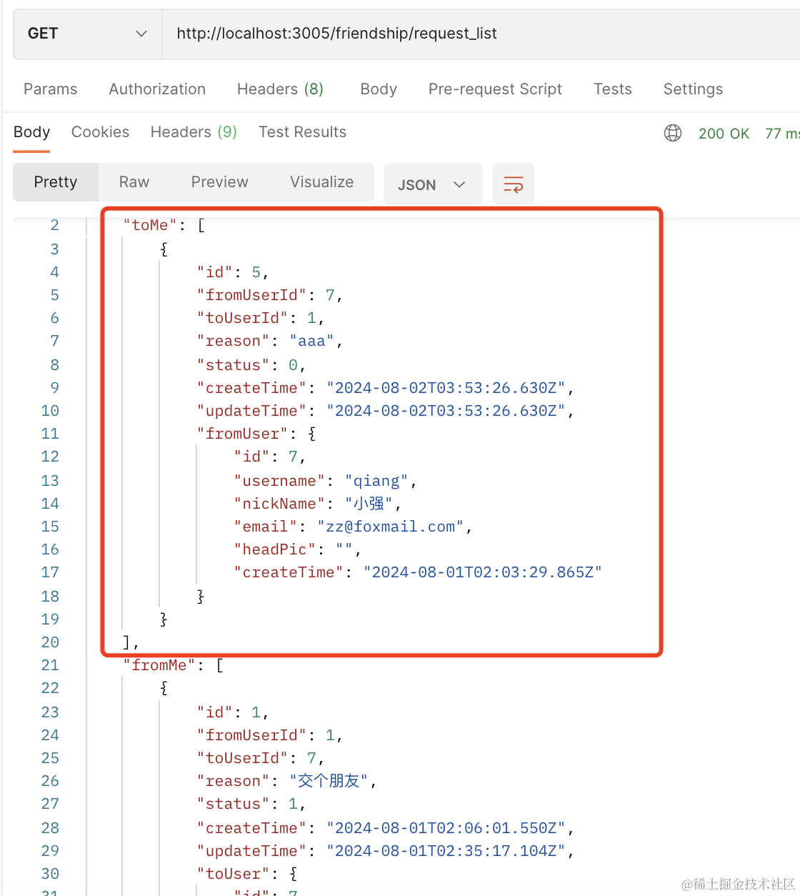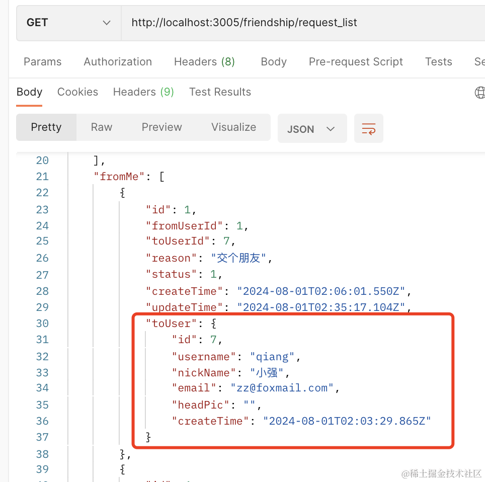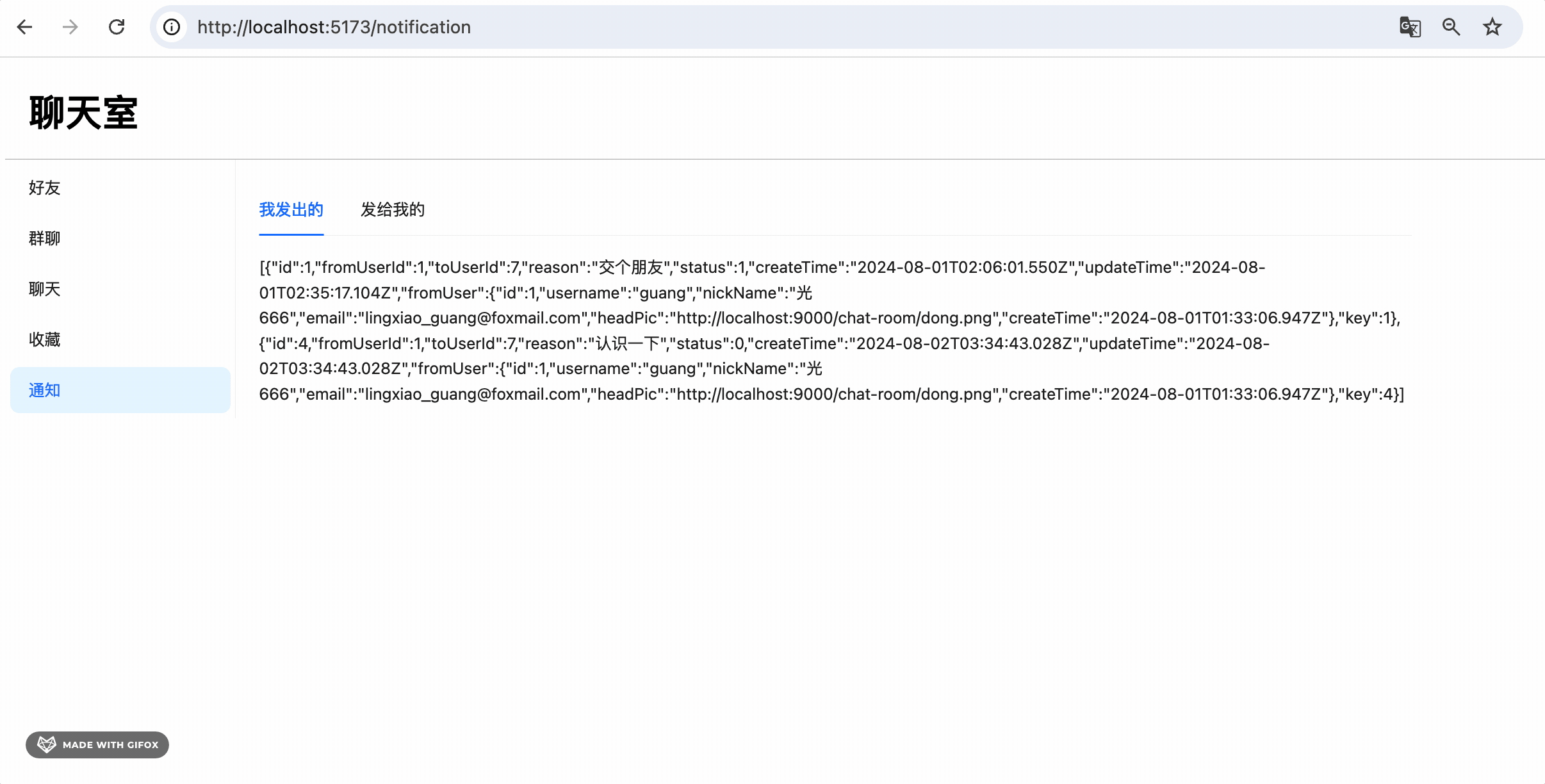 首先登录一个用户的账号,给 guang 发送好友请求: