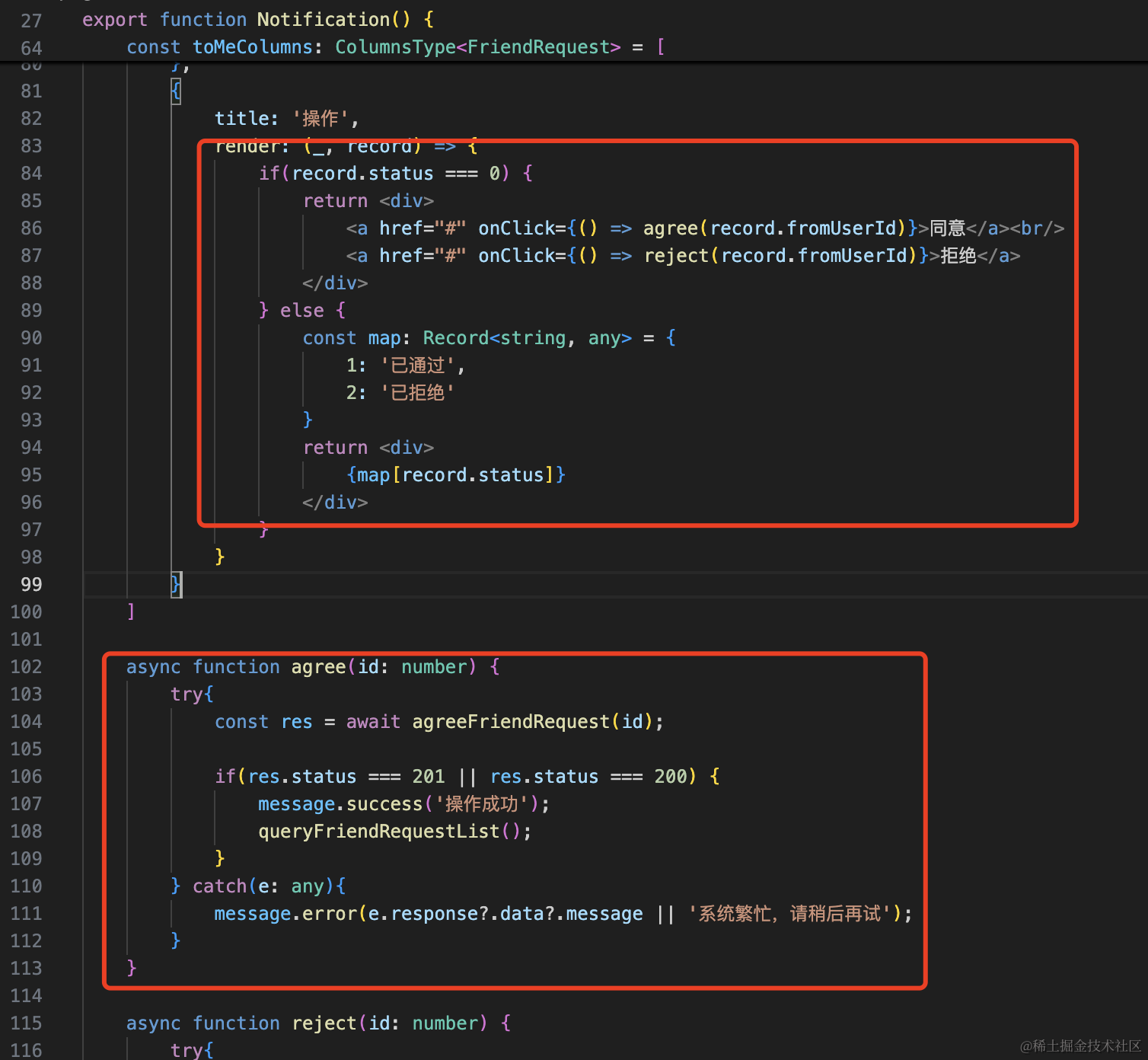 <a href="#" onClick={() => agree(record.fromUserId)}>同意</a><br/>