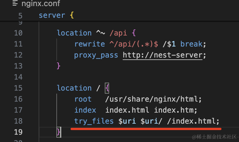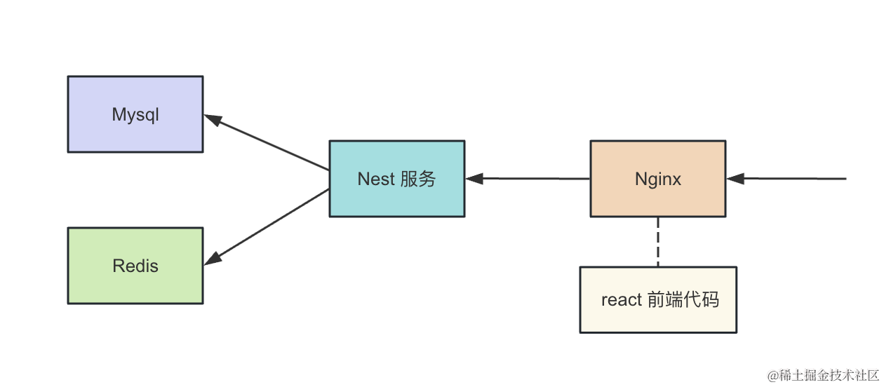 我们通过 nginx 部署了前端项目,用它来做静态资源托管和 nest 服务的反向代理。