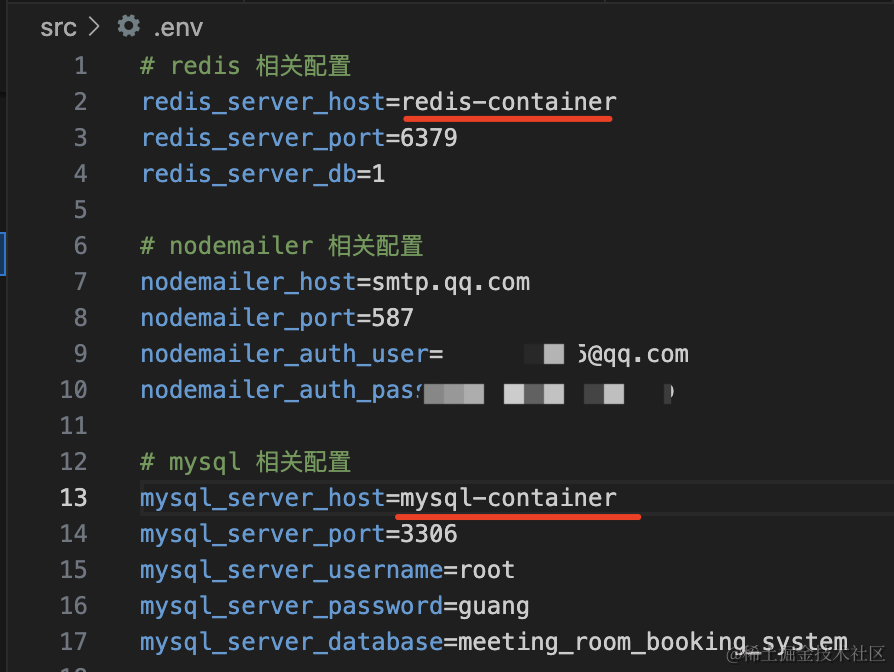 然后在 backend 项目的 docker-compose.yml 里配置下: