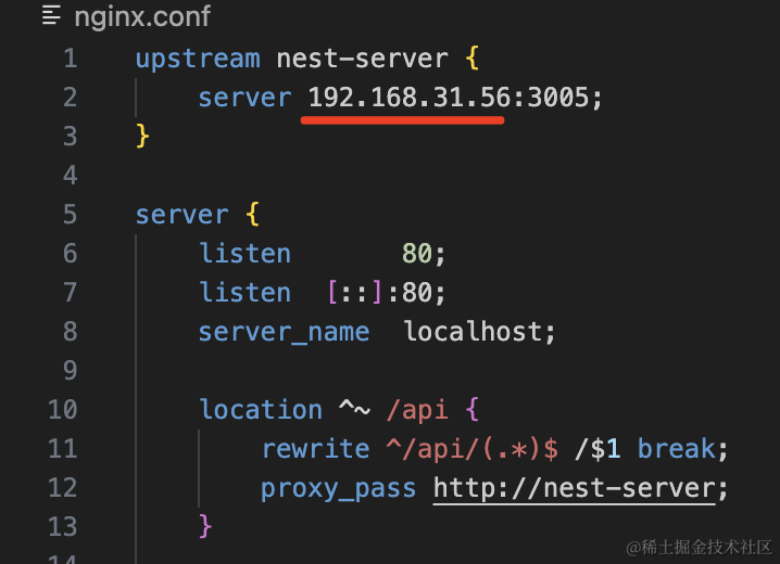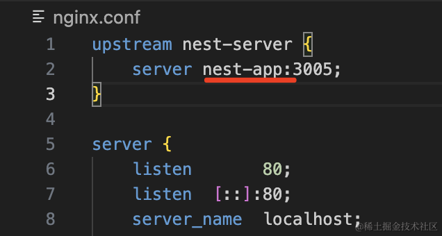 改一下 nginx 配置,把 ip 换成 nest 服务的容器名: