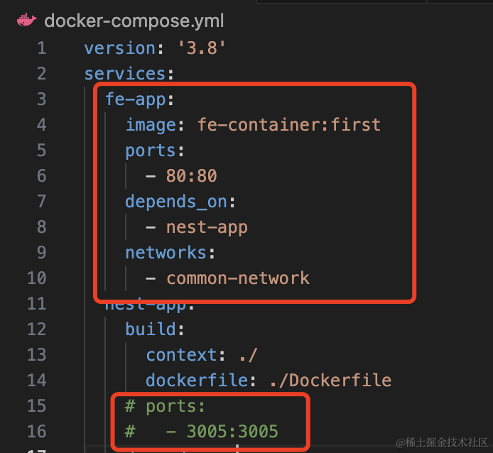 然后改一下 backend 项目里的 docker-compose.yml 文件: