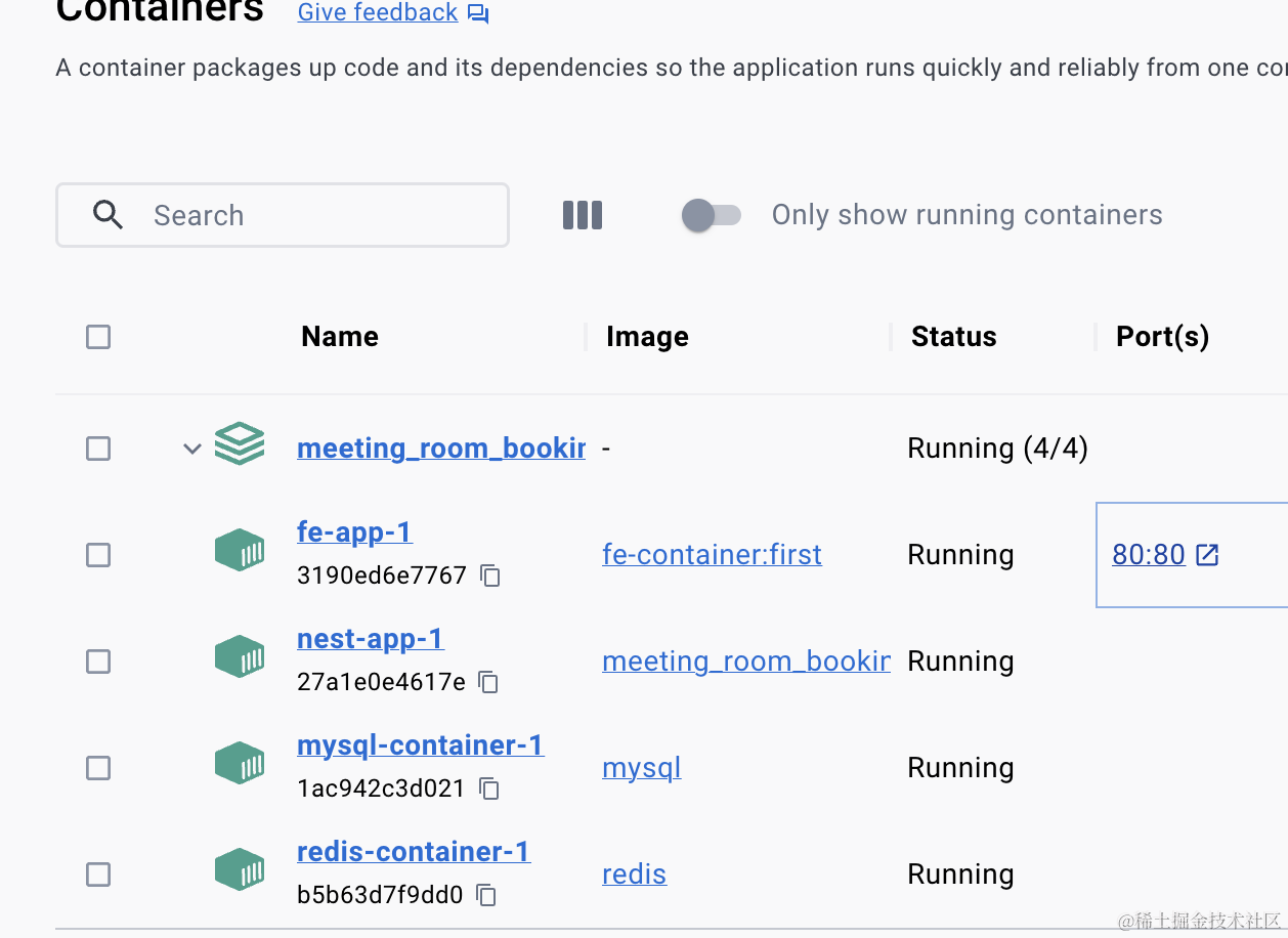 这样,我们就通过 docker compose 一次性跑了 nest、nginx 还有 mysql 和 redis 服务。