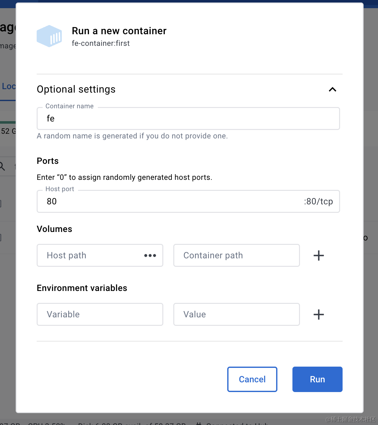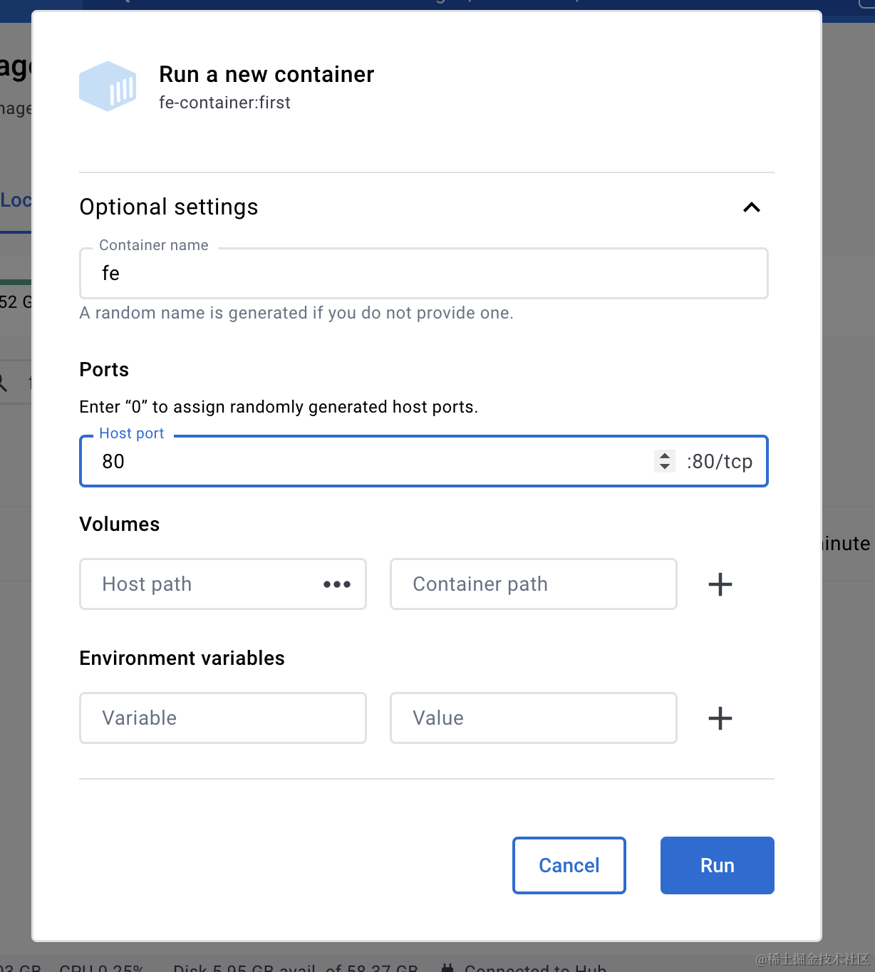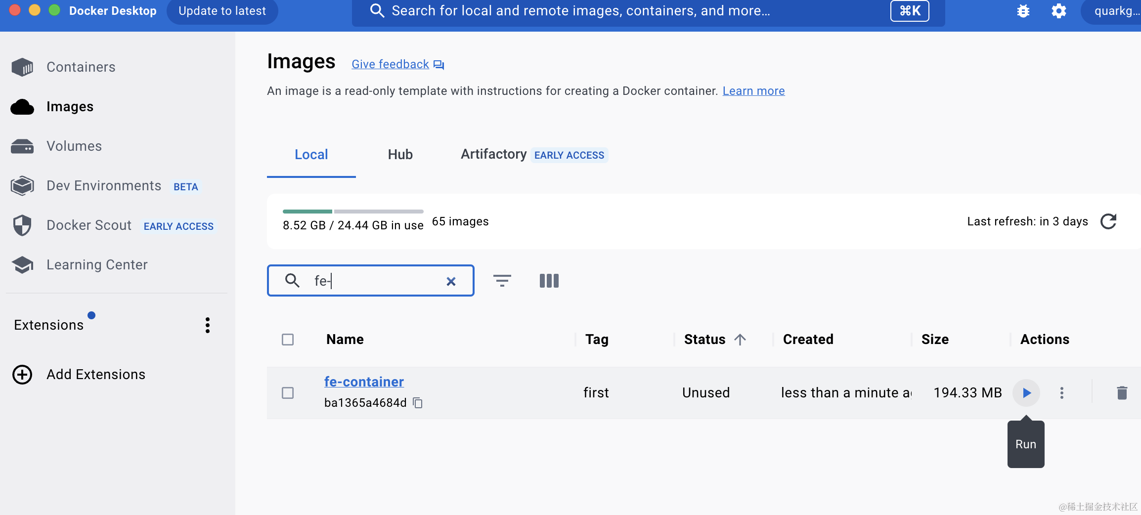 然后在 docker desktop 里搜索这个镜像,点击 run: