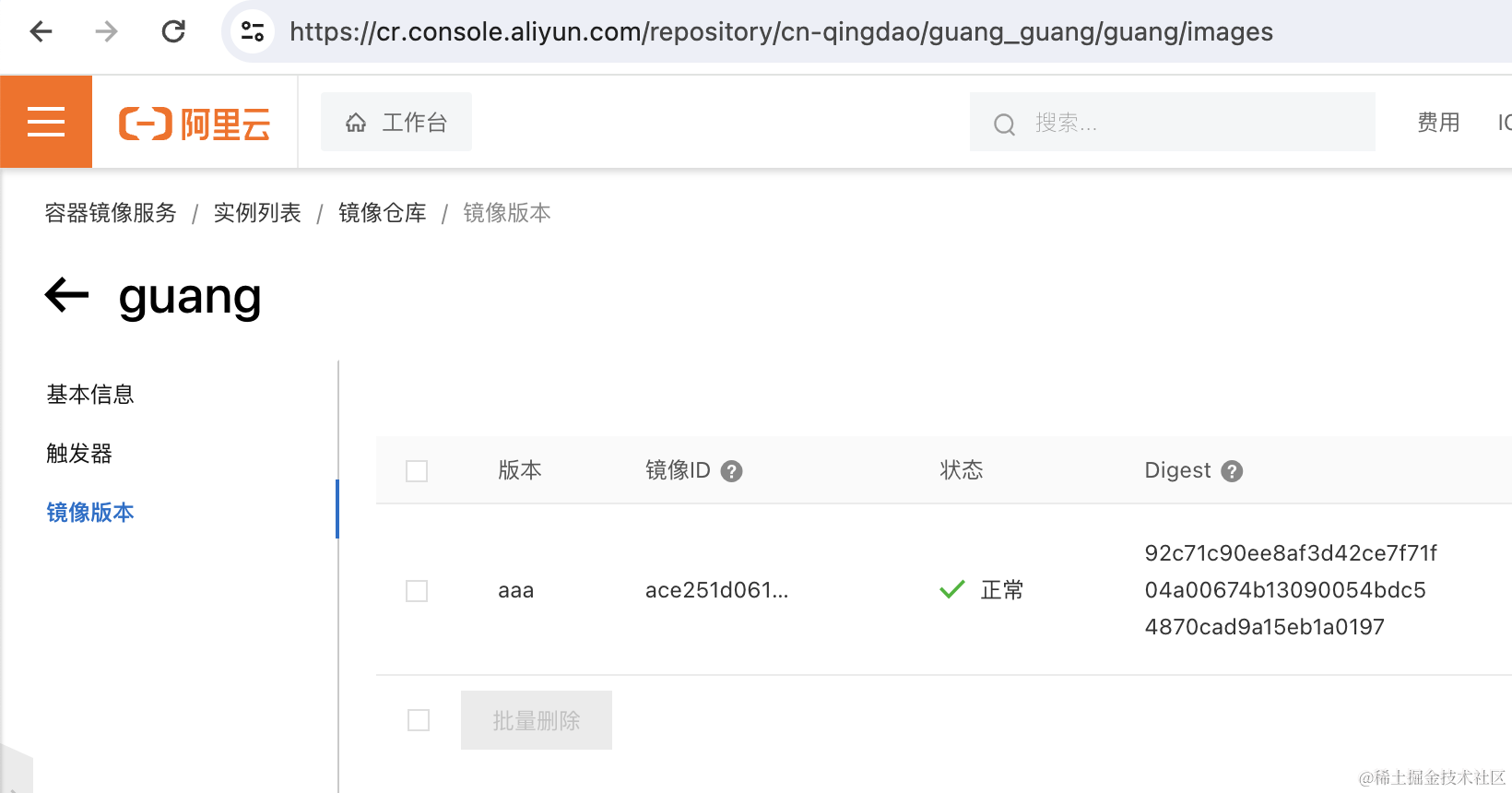 上传之后,点击镜像版本就可以看到这个版本号的镜像: